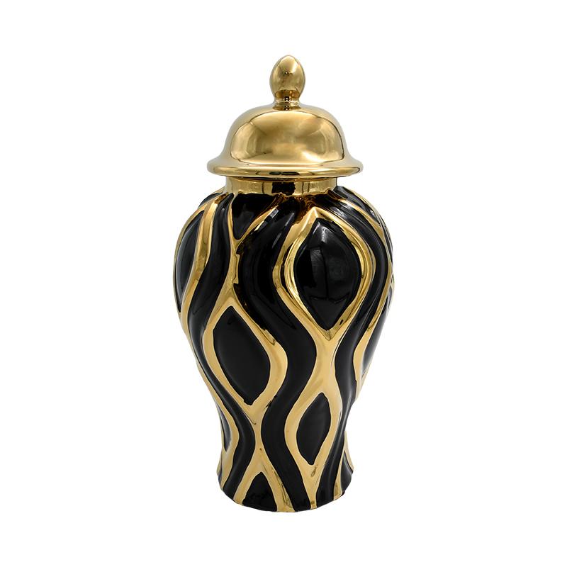 ΚΕΡΑΜΙΚΟ ΒΑΖΟ Fylliana FL22213 ΜΑΥΡΟ-ΧΡΥΣΟ ΧΡΩΜΑ 16×25εκ