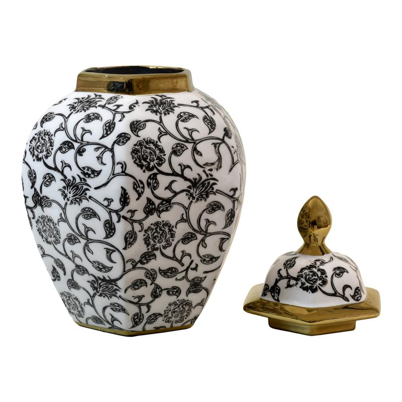 ΚΕΡΑΜΙΚΟ ΒΑΖΟ Fylliana FL22424 ΜΑΥΡΟ-ΛΕΥΚΟ-ΧΡΥΣΟ ΧΡΩΜΑ 21×32εκ