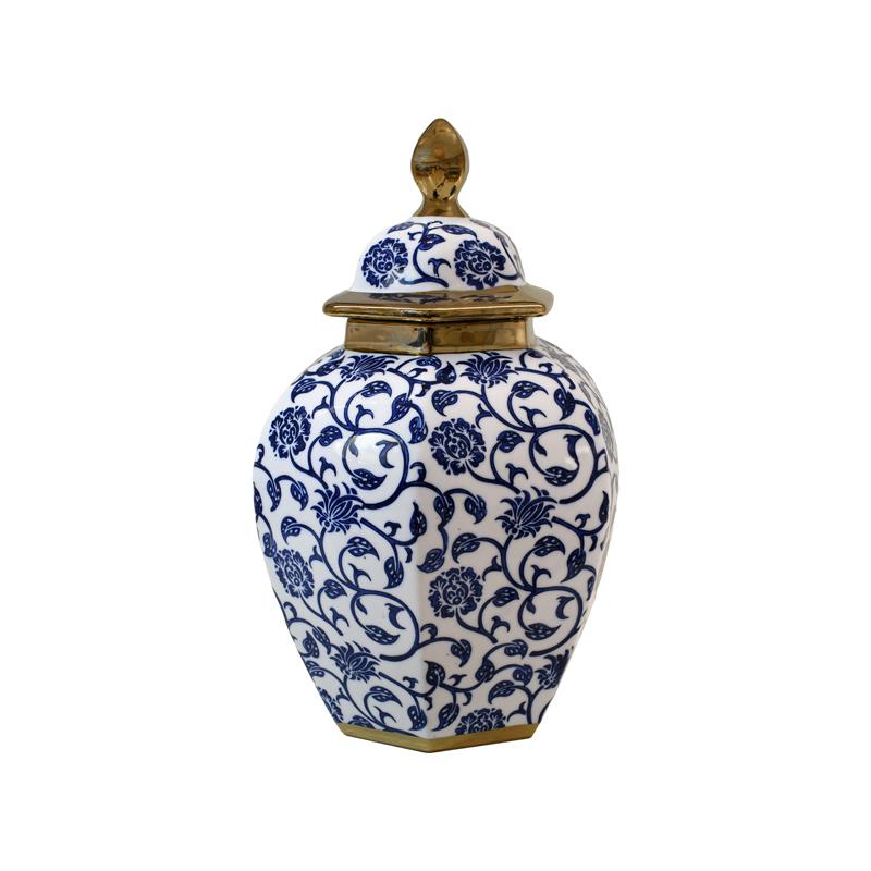ΚΕΡΑΜΙΚΟ ΒΑΖΟ Fylliana FL22424 ΜΠΛΕ-ΛΕΥΚΟ-ΧΡΥΣΟ ΧΡΩΜΑ 21×32εκ