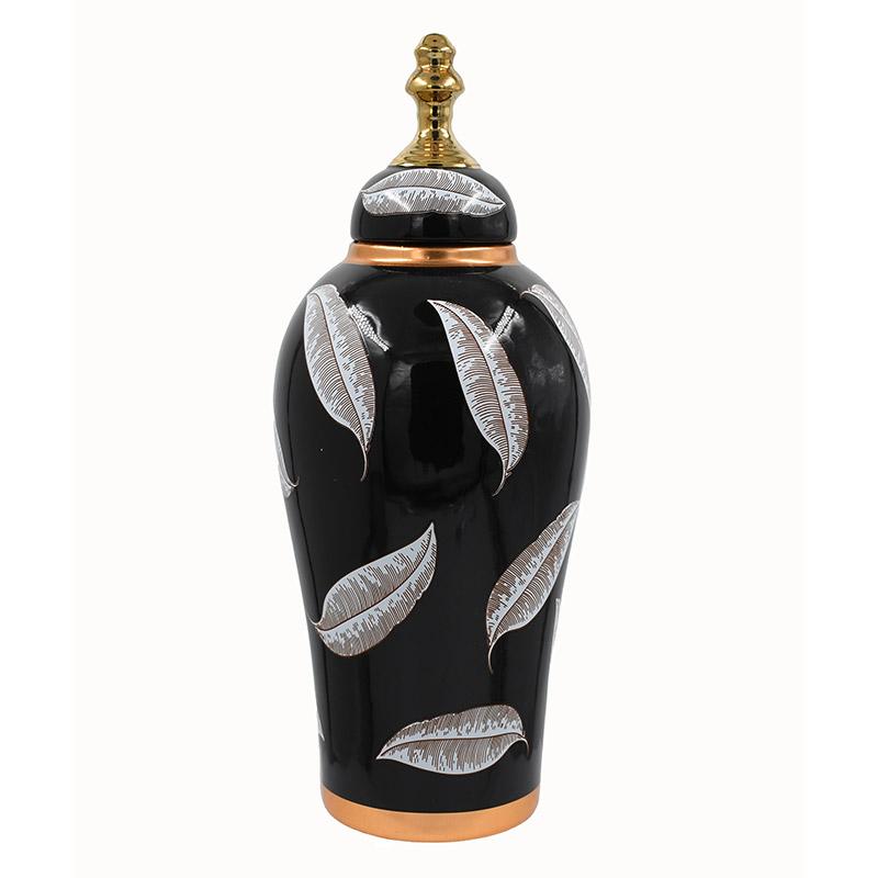 ΚΕΡΑΜΙΚΟ ΒΑΖΟ Fylliana FL7009 ΜΑΥΡΟ-ΛΕΥΚΟ-ΧΡΥΣΟ ΧΡΩΜΑ 17×41εκ