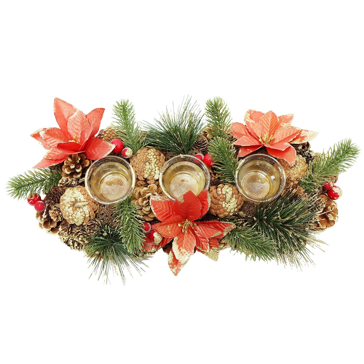Κηροπήγιο με Χριστουγεννιάτικη Διακόσμηση Κόκκινο 46cm Xmasfest 1133515 Κηροπήγιο 3 θέσεων 46cm