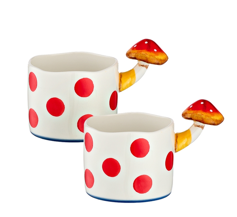 ΚΟΥΠΑ ΠΟΡΣΕΛΑΝΙΝΗ ΛΕΥΚΗ ΜΕ ΚΟΚΚΙΝΟ ΠΟΥΑ & ΧΕΡΟΥΛΙ ΜΑΝΙΤΑΡΙ Φ8×6.5cm