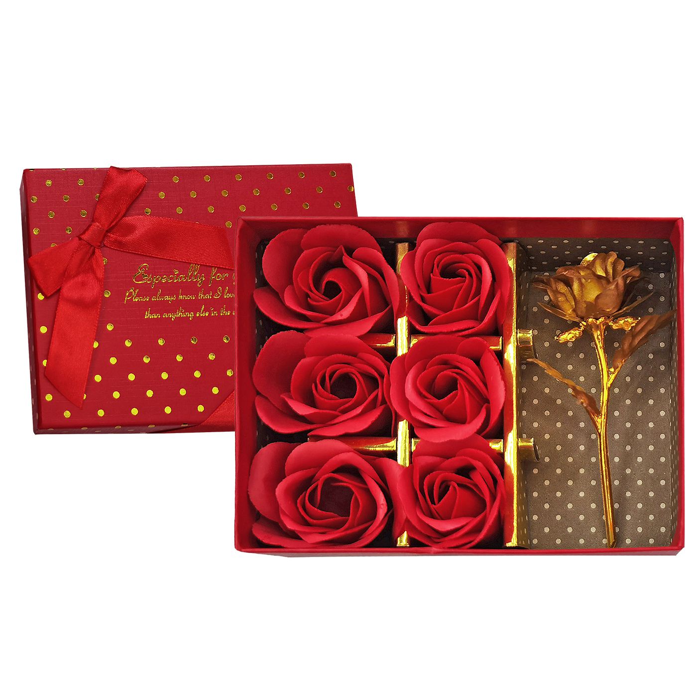 Κουτί με 6 Τριαντάφυλλα & 1 Χρυσό 15×11,5×4,5cm Homie 423076 -15×11,5×4,5cm