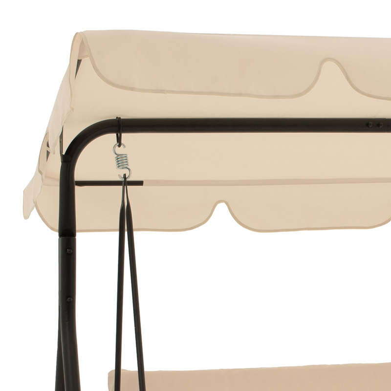 Κούνια κήπου Globo pakoworld μέταλλο μαύρο-ύφασμα μπεζ 170x110x153εκ Αφεθείτε σε μια μοναδική εμπειρία χαλάρωσης στον προσωπικό σας παράδεισο. Η κούνια κήπου Globo συνδυάζει κομψότητα και ανθεκτικότητα, προσφέροντάς σας τις πιο άνετες στιγμές στον κήπο ή τη βεράντα σας. . Τεχνικά χαρακτηριστικά: Σταθερός σκελετός σε μάυρο χρώμα, κατασκευασμένος από μέταλλο υψηλής ποιότητας με αντοχή στο χρόνο, στη φθορά και στην έκθεση σε καιρικές συνθήκες. Φέρει μαξιλάρι 5cm από ύφασμα (polyester) εξαιρετικής ποιότητας. Διαθέτει τέντα στην επάνω πλευρά της για προστασία από την ηλιακή ακτινοβολία και καλύτερη σκίαση. Προσφέρεται σε μπεζ απόχρωσηΔιάσταση προϊόντος: Μήκος: 170 εκ Πλάτος: 110 εκ Ύψος: 152 εκ Ύψος πλάτης: 44 εκ Βάθος έδρας: 42 εκ Καθαρό μήκος έδρας: 130 εκ Πάχος μαξιλαριού: 4 εκ Ύψος μπράτσου: 26 εκ Διάσταση τέντας: 168×113 εκ Αντοχή σε βάρος για κανονική χρήση: 240 κιλά Πληροφορίες υλικών: Polyester: Ο πολυεστέρας (Polyester) είναι μια συνθετική ίνα που παράγεται από πολυμερή αιθυλενίου γλυκόλης και τερεφθαλικού οξέος. Είναι ανθεκτικό στη φθορά, στις υψηλές θερμοκρασίες, στον ήλιο και τη διάβρωση. Έχει Εξαιρετική αντοχή στην τριβή και διατηρεί το χρώμα του για μεγάλο χρονικό διάστημα. Μέταλλο: Το μέταλλο χρησιμοποιείται ευρέως στην κατασκευή επίπλων, προσφέροντας μια σειρά από πλεονεκτήματα σε σχέση με άλλα υλικά. Είναι εξαιρετικά ανθεκτικό σε φθορές, ιδανικό για έπιπλα που προορίζονται για καθημερινή χρήση σε ένα απαιτητικό περιβάλλον. Διατηρεί το σχήμα και τη δομή του άψογα, εξασφαλίζοντας σταθερότητα και μακροζωία στα έπιπλα. Εκτός από τις ιδιότητες που αναφέρθηκαν παραπάνω, το μέταλλο μπορεί να έχει και άλλα χαρακτηριστικά, όπως η αντιμικροβιακή δράση (χαλκός) ή υπεραγωγιμότητα (μολυβδένιο).Οδηγίες συντήρησης: Πολυεστέρας/Πολυεστερικό ύφασμα: Τα περισσότερα υφάσματα από polyester μπορούν να πλυθούν στο πλυντήριο. Αν χρειάζεται να τα πλύνετε στο χέρι, χρησιμοποιήστε ήπιο απορρυπαντικό και πλύντε τα σε κρύο νερό. Είναι καλύτερο να αφήνετε τα είδη polyester να στεγνώνουν φυσικά αντί να χρησιμοποιείτε στεγνωτήριο. Η υψηλή θερμοκρασία μπορεί να προκαλέσει ζημιά στο υλικό. Μέταλλο: Για μεταλλικά έπιπλα εξωτερικού χώρου, θα πρέπει να ακολουθήσετε τα παρακάτω βήματα: Για μεγαλύτερη διάρκεια προστασίας, περάστε τα μεταλλικά σας έπιπλα με προστατευτική κρέμα που μπορείτε να προμηθευτείτε εύκολα από εμπορικά καταστήματα. Εάν τα έπιπλά σας είναι επεξεργασμένα και βαμμένα με την μέθοδο του powder-coating (ηλεκτροστατική βαφή) τότε είναι πολύ ανθεκτικά και καθαρίζονται εύκολα με ένα υγρό πανί. Εάν τα μεταλλικά σας έπιπλα δεν έχουν ηλεκτροστατική βαφή, τότε θα πρέπει να τα προσέχετε περισσότερο και να τα κρατάτε μακριά από νερά και υγρασία. Μπορείτε να τα καλύψετε με ειδικά καλύμματα και τον χειμώνα να τα βάζετε εάν μπορείτε σε εσωτερικό χώρο. Εάν παρατηρήσετε σκουριά, τότε αφαιρέστε την με νέφτι και στην συνέχεια περάστε αντισκωριακό βερνίκι πριν βάψετε την επιφάνεια με μπογιά, ανθεκτική στην οξείδωση. Παρατηρήσεις: Το προϊόν παραδίδεται στην αμοντάριστο εργοστασιακή του συσκευασία και με αναλυτικό οδηγό συναρμολόγησης. Η χρωματική απόχρωση του προϊόντος ενδέχεται να διαφέρει ελαφρώς σε σχέση με την φωτογραφική απεικόνισή του στην οθόνη σας.