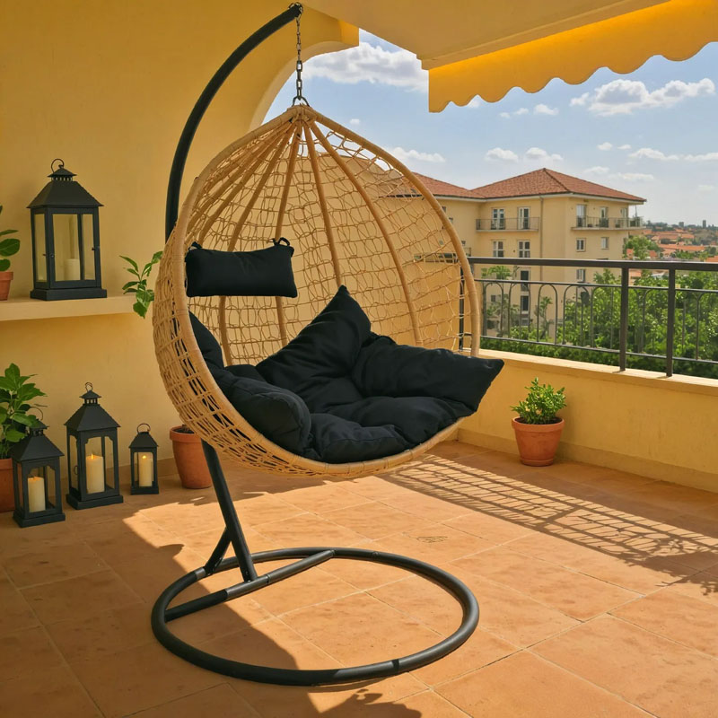 Κούνια Zafer pakoworld κρεμαστή pp σε φυσικό χρώμα και μαύρο μέταλλο 106x103x200εκ Αν αναζητάτε στιγμές χαλάρωσης στο μπαλκόνι ή τον κήπο με την αισθητική και την ποιότητα pakketo, τότε η κούνια κήπου Zafer είναι η ιδανική πρόταση λύση για εσάς. Τεχνικά χαρακτηριστικά: Σταθερός σκελετός από υψηλής ποιότητας μέταλλο με μεγάλη αντοχή στη φθορά και στο χρόνο. Στιβαρή κατασκευή κατάλληλη για χρήση στον κήπο ή στο μπαλκόνι σας. Χρώμα: φυσικό. Επένδυση από PP: ενισχυμένο πολυπροπυλένιο. Στη συσκευασία συμπεριλαμβάνεται και το μαξιλάρι που ταιριάζει ακριβώς στο μέγεθος της κούνιας. Είναι κατασκευασμένο από ύφασμα και προσφέρεται στο χρωματισμό του μαύρου. Επένδυση μαξιλαριού foam που προσφέρει άνεση στο κάθισμα και ανθεκτικότητα. Διαστάσεις προϊόντος:Διάμετρος μεταλλικής βάσης: 103 εκ.Διαστάσεις καθίσματος κούνιας: Μήκος: 106 εκ. Πλάτος: 68 εκ. Ύψος: 120 εκ.Διαστάσεις μαξιλαριού: Μήκος: 40 εκ. Πλάτος: 30 εκ. Ύψος: 30 εκ.Συνολικές διαστάσεις κούνιας: Μήκος: 106 εκ. Πλάτος: 103 εκ. Ύψος: 200 εκ.Πληροφορίες υλικών: Μέταλλο:Το μέταλλο χρησιμοποιείται ευρέως στην κατασκευή επίπλων, προσφέροντας μια σειρά από πλεονεκτήματα σε σχέση με άλλα υλικά. Είναι εξαιρετικά ανθεκτικό σε φθορές, ιδανικό για έπιπλα που προορίζονται για καθημερινή χρήση σε ένα απαιτητικό περιβάλλον. Διατηρεί το σχήμα και τη δομή του άψογα, εξασφαλίζοντας σταθερότητα και μακροζωία στα έπιπλα. Εκτός από τις ιδιότητες που αναφέρθηκαν παραπάνω, το μέταλλο μπορεί να έχει και άλλα χαρακτηριστικά, όπως η αντιμικροβιακή δράση (χαλκός) ή υπεραγωγιμότητα (μολυβδένιο). Ύφασμα: Το ύφασμα είναι ένα ευέλικτο υλικό που κατασκευάζεται από την ύφανση, πλέξιμο, βελονιά ή συγκόλληση ινών. Αυτές οι ίνες μπορεί να είναι φυσικές, όπως βαμβάκι, μαλλί ή μετάξι, ή συνθετικές, όπως πολυεστέρας ή νάιλον. Η ύφανση των ινών δημιουργεί ένα δίκτυο που δίνει στο ύφασμα τις ιδιότητές του, όπως η αντοχή, η απαλότητα, η διαπνοή και η ελαστικότητα. Υπάρχουν άπειρες ποικιλίες υφασμάτων, καθεμιά με τα δικά της μοναδικά χαρακτηριστικά και χρήσεις. PP:Το πολυπροπυλένιο (PP), είναι ένα θερμοπλαστικό υλικό που χρησιμοποιείται ευρέως σε πολλούς τομείς λόγω των εξαιρετικών του ιδιοτήτων. Παρόλο που είναι ελαφρύ, έχει υψηλή αντοχή στην κρούση, καθιστώντας το κατάλληλο για εφαρμογές που απαιτούν ανθεκτικότητα σε χτυπήματα και τριβές. Διατηρεί τις ιδιότητές του ακόμα και υπό επίδραση υγρασίας, κάνοντάς το κατάλληλο για εφαρμογές σε περιβάλλοντα με υψηλή υγρασία.Οδηγίες συντήρησης: Μέταλλο: Εάν πρόκειται για μεταλλικά έπιπλα εξωτερικού χώρου, θα πρέπει να ακολουθήσετε τα παρακάτω βήματα: Για μεγαλύτερη διάρκεια προστασίας, περάστε τα μεταλλικά σας έπιπλα με προστατευτική κρέμα που μπορείτε να προμηθευτείτε εύκολα από εμπορικά καταστήματα. Εάν τα έπιπλά σας είναι επεξεργασμένα και βαμμένα με την μέθοδο του powder-coating (ηλεκτροστατική βαφή) τότε είναι πολύ ανθεκτικά και καθαρίζονται εύκολα με ένα υγρό πανί. Εάν τα μεταλλικά σας έπιπλα δεν έχουν ηλεκτροστατική βαφή, τότε θα πρέπει να τα προσέχετε περισσότερο και να τα κρατάτε μακριά από νερά και υγρασία. Μπορείτε να τα καλύψετε με ειδικά καλύμματα και τον χειμώνα να τα βάζετε εάν μπορείτε σε εσωτερικό χώρο. Εάν παρατηρήσετε σκουριά, τότε αφαιρέστε την με νέφτι και στην συνέχεια περάστε αντισκωριακό βερνίκι πριν βάψετε την επιφάνεια με μπογιά, ανθεκτική στην οξείδωση. Ύφασμα: Η συντήρηση του υφάσματος εξαρτάται 