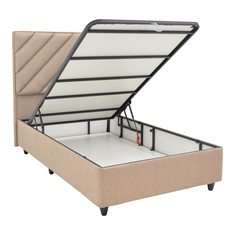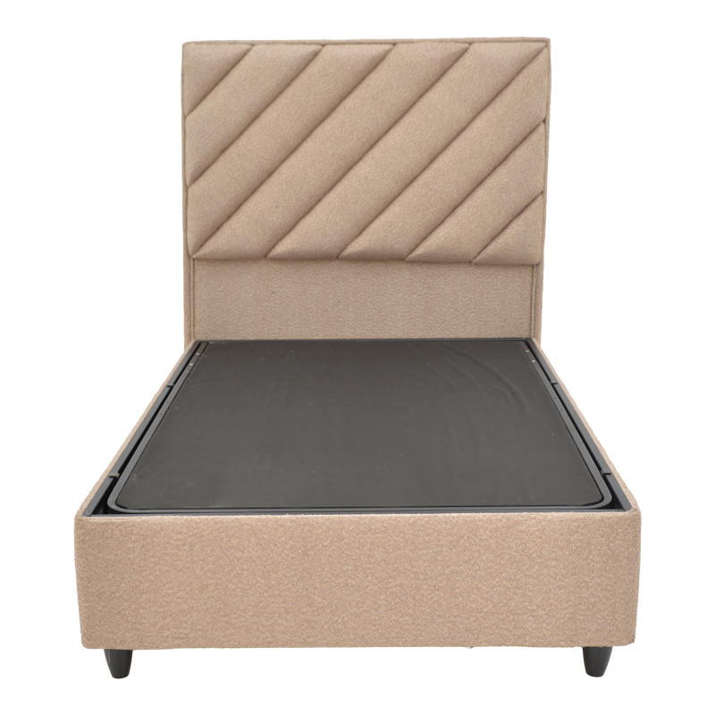 Κρεβάτι μονό Tito pakoworld με αποθηκευτικό χώρο μπουκλέ ύφασμα σε ανοιχτή καφέ απόχρωση 120×200εκ