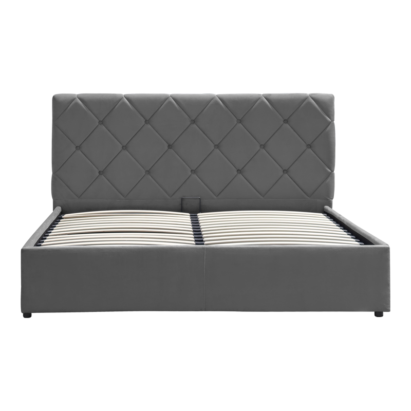 Κρεβάτι Dreamie pakoworld με αποθηκευτικό χώρο βελούδο ανθρακί 160×200εκ Κρεβάτι Dreamie με Αποθηκευτικό ΧώροTο κομψό και λειτουργικό κρεβάτι Dreamie, προσφέρει μια έξυπνη λύση αποθήκευσης, καθώς διαθέτει έναν εύχρηστο μηχανισμό ανύψωσης του στρώματος, αποκαλύπτοντας έναν ευρύχωρο αποθηκευτικό χώρο από κάτω. Το κεφαλάρι, με το διαχρονικό καπιτονέ σχέδιο, προσθέτει μια νότα πολυτέλειας και άνεσης, ενώ η χρωματική του απόχρωση το καθιστά ευέλικτο και συμβατό με όλα τα στυλ διακόσμησης.Τεχνικά χαρακτηριστικά: Κατασκευή από ξύλινο (plywood) σκελετό και επενδυμένο με βελούδο υψηλής ποιότητας, που παρέχει ανθεκτικότητα στον χρόνο Προσφέρεται σε ανθρακί χρώμα. Το κρεβάτι φέρει ανατομικές τάβλες, για έναν ξεκούραστο και ανανεωτικό ύπνο. Με έναν εύκολο μηχανισμό ανύψωσης, ανασηκώνεται αβίαστα, αποκαλύπτοντας έναν μεγάλο χώρο ιδανικό για την αποθήκευση λευκών ειδών, μαξιλαριών, εποχιακών ρούχων ή άλλων αντικειμένων, συμβάλλοντας στην οργάνωση και την τάξη του χώρου. Η βάση στηρίζεται σε ενισχυμένα pp μαύρα πόδια ύψους 2,5εκ. Εξοικονόμηση χώρου, αυξημένη χωρητικότητα αποθήκευσης, μοντέρνα αισθητική Συνδυάζεται με στρώμα διαστάσεων 160×200 (δεν συμπεριλαμβάνεται στο κρεβάτι)Διάσταση προϊόντος: Μήκος: 168 εκ Πλάτος: 214 εκ Ύψος: 100 εκ.Παρατηρήσεις: Το προϊόν παραδίδεται αμοντάριστο, σε εργοστασιακή συσκευασία και με αναλυτικό οδηγό συναρμολόγησης. Η χρωματική απόχρωση του προϊόντος ενδέχεται να διαφέρει ελαφρώς σε σχέση με την φωτογραφική απεικόνισή του στην οθόνη σας.Προσφέρει τόσο πρακτικές λύσεις αποθήκευσης όσο και μια αισθητικά άρτια παρουσία, το κρεβάτι Dreamie αποτελεί ιδανική επιλογή για όσους αναζητούν λειτουργικότητα χωρίς συμβιβασμούς στο στυλ.