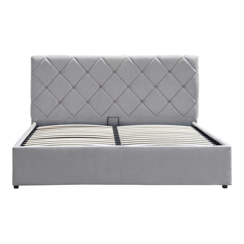 Κρεβάτι Dreamie pakoworld με αποθηκευτικό χώρο βελούδο γκρι 160×200εκ Κρεβάτι Dreamie με Αποθηκευτικό ΧώροTο κομψό και λειτουργικό κρεβάτι Dreamie, προσφέρει μια έξυπνη λύση αποθήκευσης, καθώς διαθέτει έναν εύχρηστο μηχανισμό ανύψωσης του στρώματος, αποκαλύπτοντας έναν ευρύχωρο αποθηκευτικό χώρο από κάτω. Το κεφαλάρι, με το διαχρονικό καπιτονέ σχέδιο, προσθέτει μια νότα πολυτέλειας και άνεσης, ενώ η χρωματική του απόχρωση το καθιστά ευέλικτο και συμβατό με όλα τα στυλ διακόσμησης.Τεχνικά χαρακτηριστικά: Κατασκευή από ξύλινο (plywood) σκελετό και επενδυμένο με βελούδο υψηλής ποιότητας, που παρέχει ανθεκτικότητα στον χρόνο Προσφέρεται σε γκρι χρώμα. Το κρεβάτι φέρει ανατομικές τάβλες, για έναν ξεκούραστο και ανανεωτικό ύπνο. Με έναν εύκολο μηχανισμό ανύψωσης, ανασηκώνεται αβίαστα, αποκαλύπτοντας έναν μεγάλο χώρο ιδανικό για την αποθήκευση λευκών ειδών, μαξιλαριών, εποχιακών ρούχων ή άλλων αντικειμένων, συμβάλλοντας στην οργάνωση και την τάξη του χώρου. Η βάση στηρίζεται σε ενισχυμένα pp μαύρα πόδια ύψους 2,5εκ. Εξοικονόμηση χώρου, αυξημένη χωρητικότητα αποθήκευσης, μοντέρνα αισθητική Συνδυάζεται με στρώμα διαστάσεων 160×200 (δεν συμπεριλαμβάνεται στο κρεβάτι)Διάσταση προϊόντος: Μήκος: 168 εκ Πλάτος: 214 εκ Ύψος: 100 εκ.Παρατηρήσεις: Το προϊόν παραδίδεται αμοντάριστο, σε εργοστασιακή συσκευασία και με αναλυτικό οδηγό συναρμολόγησης. Η χρωματική απόχρωση του προϊόντος ενδέχεται να διαφέρει ελαφρώς σε σχέση με την φωτογραφική απεικόνισή του στην οθόνη σας.Προσφέρει τόσο πρακτικές λύσεις αποθήκευσης όσο και μια αισθητικά άρτια παρουσία, το κρεβάτι Dreamie αποτελεί ιδανική επιλογή για όσους αναζητούν λειτουργικότητα χωρίς συμβιβασμούς στο στυλ.