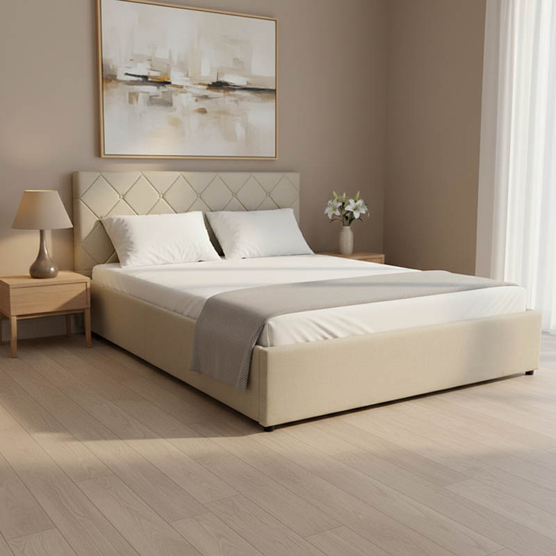 Κρεβάτι Dreamie pakoworld με αποθηκευτικό χώρο ύφασμα μπεζ 160×200εκ Κρεβάτι Dreamie με Αποθηκευτικό ΧώροTο κομψό και λειτουργικό κρεβάτι Dreamie, προσφέρει μια έξυπνη λύση αποθήκευσης, καθώς διαθέτει έναν εύχρηστο μηχανισμό ανύψωσης του στρώματος, αποκαλύπτοντας έναν ευρύχωρο αποθηκευτικό χώρο από κάτω. Το κεφαλάρι, με το διαχρονικό καπιτονέ σχέδιο, προσθέτει μια νότα πολυτέλειας και άνεσης, ενώ η χρωματική του απόχρωση το καθιστά ευέλικτο και συμβατό με όλα τα στυλ διακόσμησης.Τεχνικά χαρακτηριστικά: Κατασκευή από ξύλινο (plywood) σκελετό και επενδυμένο με ύφασμα υψηλής ποιότητας, που παρέχει κομψότητα και ανθεκτικότητα Προσφέρεται σε μπεζ χρώμα. Το κρεβάτι φέρει ανατομικές τάβλες, για έναν ξεκούραστο και ανανεωτικό ύπνο. Με έναν εύκολο μηχανισμό ανύψωσης, ανασηκώνεται αβίαστα, αποκαλύπτοντας έναν μεγάλο χώρο ιδανικό για την αποθήκευση λευκών ειδών, μαξιλαριών, εποχιακών ρούχων ή άλλων αντικειμένων, συμβάλλοντας στην οργάνωση και την τάξη του χώρου. Η βάση στηρίζεται σε ενισχυμένα pp μαύρα πόδια ύψους 2,5εκ. Εξοικονόμηση χώρου, αυξημένη χωρητικότητα αποθήκευσης, μοντέρνα αισθητική Συνδυάζεται με στρώμα διαστάσεων 160×200 (δεν συμπεριλαμβάνεται στο κρεβάτι)Διάσταση προϊόντος: Μήκος: 168 εκ Πλάτος: 214 εκ Ύψος: 100 εκ.Παρατηρήσεις: Το προϊόν παραδίδεται αμοντάριστο, σε εργοστασιακή συσκευασία και με αναλυτικό οδηγό συναρμολόγησης. Η χρωματική απόχρωση του προϊόντος ενδέχεται να διαφέρει ελαφρώς σε σχέση με την φωτογραφική απεικόνισή του στην οθόνη σας.Προσφέρει τόσο πρακτικές λύσεις αποθήκευσης όσο και μια αισθητικά άρτια παρουσία, το κρεβάτι Dreamie αποτελεί ιδανική επιλογή για όσους αναζητούν λειτουργικότητα χωρίς συμβιβασμούς στο στυλ.