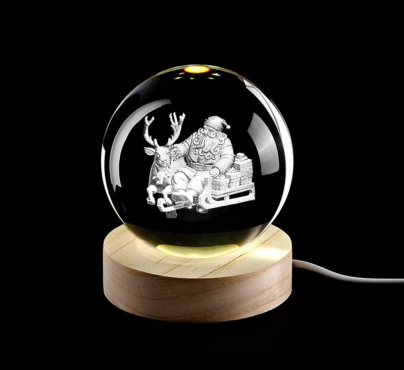 ΚΡΥΣΤΑΛΛΙΝΗ ΜΠΑΛΑ ΦΩΤΙΣΤΙΚΟ ΜΕ ΞΥΛΙΝΗ ΒΑΣΗ ΕΛΚΗΘΡΟ ΜΕ ΤΑΡΑΝΔΟ 8cm