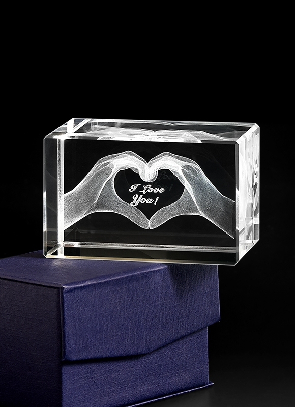 ΚΡΥΣΤΑΛΛΙΝΟ ΔΙΑΚΟΣΜΗΤΙΚΟ ΜΕ 3D ΚΑΡΔΙΑ ”I LOVE YOU” 4x4x6cm
