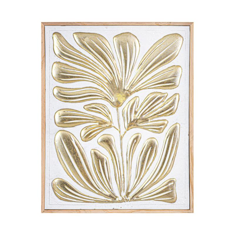 ΜΕΤΑΛΛΙΚΟΣ ΠΙΝΑΚΑΣ ΦΥΛΛΩΜΑΤΑ Fylliana FL1945 ΛΕΥΚΟ-ΧΡΥΣΟ ΧΡΩΜΑ 67x4x86εκ –