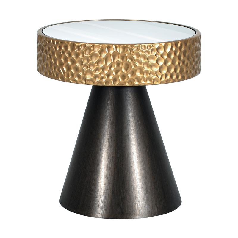 ΜΕΤΑΛΛΙΚΟ ΣΤΡΟΓΓΥΛΟ ΤΡΑΠΕΖΑΚΙ ΣΑΛΟΝΙΟΥ ΜΕ ΚΑΘΡΕΠΤΗ Fylliana FL0184 ΧΡΥΣΟ – ΜΑΥΡΟ 45×48εκ –