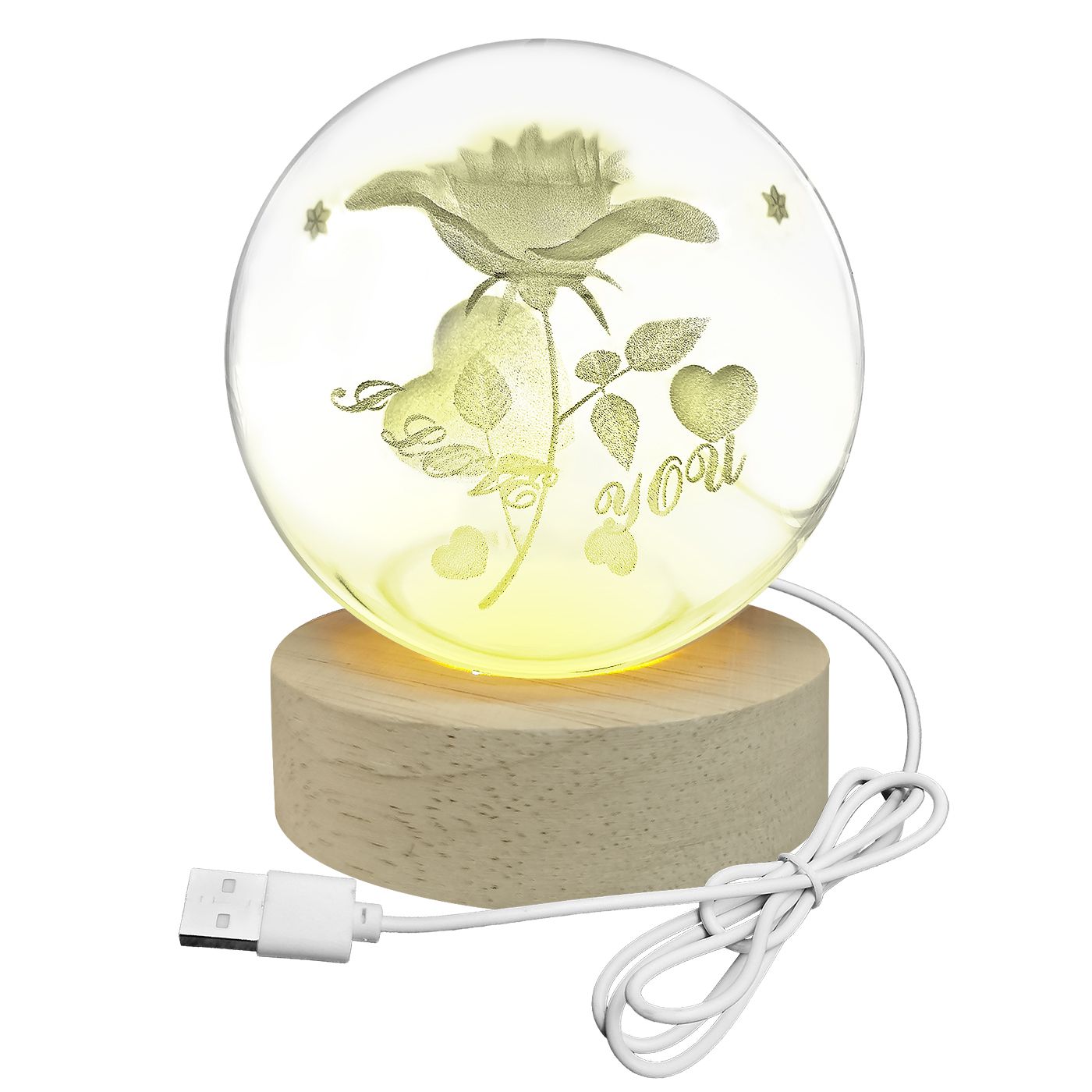 Μπάλα Γυάλινη I Love you με Βάση 6 Led ø8cm Homie 423113 -Γυάλινη μπάλα. Βάση USB 6 LED ø8cm