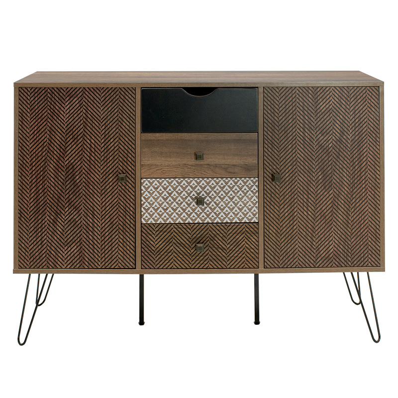 Μπουφές Boho pakoworld με τέσσερα συρτάρια καρυδί μεταλλικά πόδια 122×39,5×86εκ Μπουφές Boho με τέσσερα συρτάρια καρυδί μεταλλικά πόδια 122×39,5×86εκΗ κομψότητα, η ποιότητα και το minimal design είναι το στυλ σου; Και έχεις βαρεθεί τα ίδια και τα ίδια; Αν ναι, τότε ο μπουφές Boho είναι για εσένα. Με μοντέρνο σχεδιασμό, ανθεκτικά υλικά και τέσσερα συρτάρια για την αποθήκευση των αγαπημένων σου αξεσουάρ. Μία ιδανική πρόταση διακόσμησης για την αισθητική ανανέωση του χώρου σου. Τεχνικά χαρακτηριστικά: Κατασκευή από melamine paper wood πάχους 15mm υψηλής ποιότητας, με αντοχή στην καταπόνηση, την φθορά και τον χρόνο. Προσφέρεται σε καρυδί χρώμα με γεωμετρικά μοτίβα. Φέρει καλαίσθητα μεταλλικά μαύρα πόδια που εξυψώνουν το σύνολο και αναδεικνύουν το έπιπλο. Στη σύνθεση περιλαμβάνονται τέσσερα συρτάρια και δύο ντουλάπια. Διάσταση προϊόντος: Μήκος: 122 εκ. Πλάτος: 39,5 εκ. Ύψος: 86 εκ.Πληροφορίες υλικών: Μελαμίνη (LPB): Η μελαμίνη LPB (Low Pressure Melamine) είναι ένα συνθετικό υλικό που χρησιμοποιείται ευρέως στην επιφανειακή επεξεργασία μοριοσανίδας στην κατασκευή επίπλων και επιφανειών, λόγω της ανθεκτικότητάς της και της ευκολίας στη συντήρηση. Εφαρμόζεται σε υποστρώματα όπως το MDF (Medium-density fibreboard/ινοσανίδα) ή το κόντρα πλακέ OSB για να παράγει ανθεκτικές επιφάνειες. LPL DECOR PAPER: Το LPL (Low-Pressure Laminate) Decor Paper είναι ένα υλικό που χρησιμοποιείται ευρέως για τη διακόσμηση επιφανειών, όπως επίπλων, πορτών, πατωμάτων και άλλων επιφανειών εσωτερικής διακόσμησης. Είναι ένας τύπος διακοσμητικού χαρτιού που εμποτίζεται με ρητίνες για να γίνει ανθεκτικό και να αποκτήσει γυαλάδα. Στην συνέχεια, εφαρμόζεται σε υποστρώματα όπως MDF (Medium-density fibreboard/ινοσανίδα) ή κόντρα πλακέ και επεξεργάζεται υπό χαμηλή πίεση και θερμότητα για να παράγει προϊόντα, όπως επιφάνειες επίπλων. Είναι διαθέσιμο σε μια ευρεία ποικιλία χρωμάτων, σχεδίων και υφών που μπορούν να αναπαράγουν φυσικά υλικά όπως ξύλο, μάρμαρο και γρανίτη. Μέταλλο: Το μέταλλο χρησιμοποιείται ευρέως στην κατασκευή επίπλων, προσφέροντας μια σειρά από πλεονεκτήματα σε σχέση με άλλα υλικά. Είναι εξαιρετικά ανθεκτικό σε φθορές, ιδανικό για έπιπλα που προορίζονται για καθημερινή χρήση σε ένα απαιτητικό περιβάλλον. Διατηρεί το σχήμα και τη δομή του άψογα, εξασφαλίζοντας σταθερότητα και μακροζωία στα έπιπλα. Εκτός από τις ιδιότητες που αναφέρθηκαν παραπάνω, το μέταλλο μπορεί να έχει και άλλα χαρακτηριστικά, όπως η αντιμικροβιακή δράση (χαλκός) ή υπεραγωγιμότητα (μολυβδένιο).Οδηγίες συντήρησης: Μελαμίνη (LPB): Ένα από τα πιο γνωστά υλικά στον χώρο του επίπλου είναι η μελαμίνη. Για να αφαιρέσετε τους λεκέδες από την επιφάνεια χρησιμοποιείστε ένα μαλακό πανί με χλιαρό νερό και ήπιο σαπούνι. Σκουπίστε απαλά την επιφάνεια μέχρι να αφαιρεθεί ο λεκές. Η μελαμίνη είναι ευαίσθητη στην υγρασία, επομένως είναι σημαντικό να την προστατεύετε από το νερό. LPL Decor Paper: Οι επιφάνειες με επένδυση LPL είναι εύκολες στον καθαρισμό με ήπια απορρυπαντικά και μαλακό πανί. Συνίσταται να αποφεύγεται η επαφή με υγρά στοιχεία. Μέταλλο: Εάν πρόκειται για οποιδήποτε μέταλλο εσωτερικού χώρου, ένα ξεσκόνισμα ή ένα καθάρισμα με υγρό πανί σε τακτά χρονικά διαστήματα είναι η ενδεδειγμένη επιλογή.Ωστόσο, εάν πρόκειται για μεταλλικά έπιπλα εξωτερικού χώρου, θα πρέπει να ακολουθήσετε τα παρακάτω βήματα: Για μεγαλύτερη διάρκεια προστασίας, περάστε τα μεταλλικά σας έπιπλα με προστατευτική κρέμα που μπορείτε