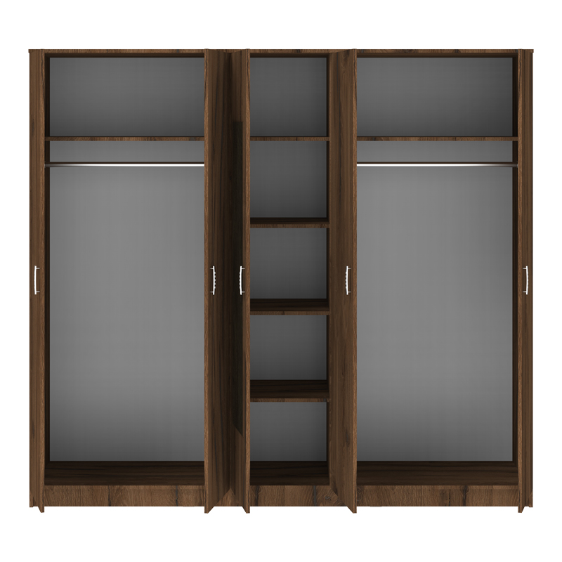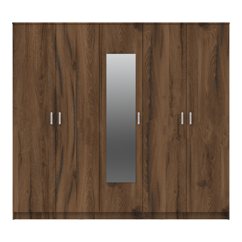 Ντουλάπα πεντάφυλλη με καθρέφτη Luna pakoworld καρυδί-oak 220x52x200εκ