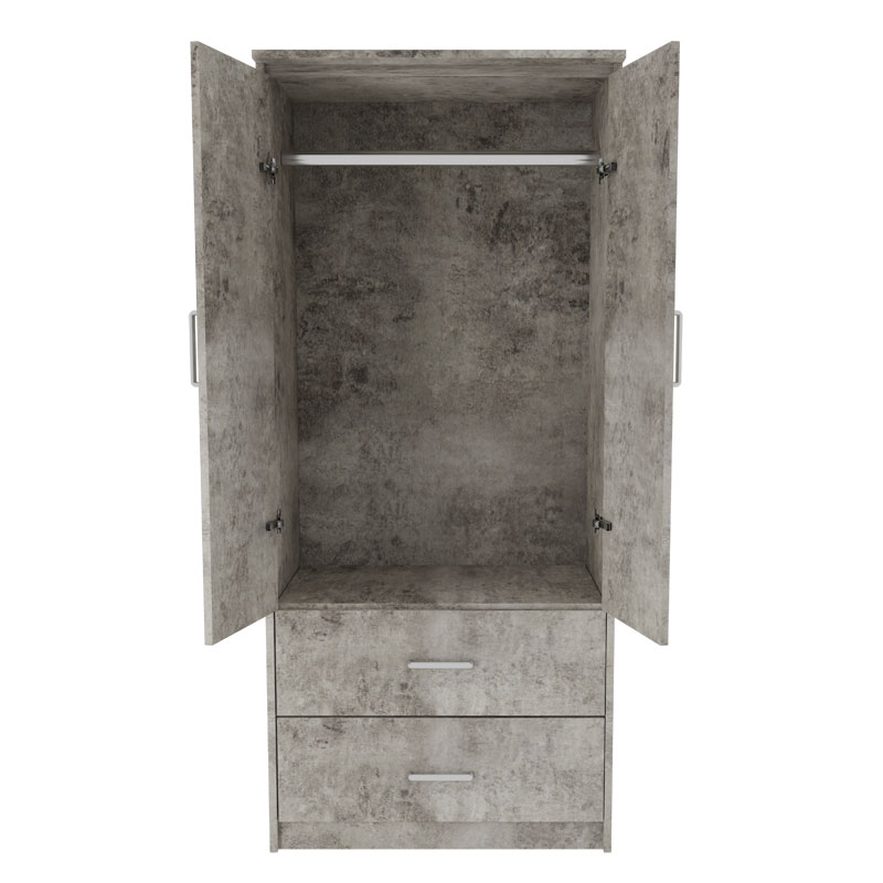Ντουλάπα ρούχων δίφυλλη OLYMPUS pakoworld χρώμα antique ανθρακί 81x57x183εκ Ντουλάπα ρούχων δίφυλλη OLYMPUS pakoworld χρώμα antique ανθρακί 81x57x183εκΑναζητάτε την υψηλή ποιότητα κατασκευής σε συνδυασμό με την εργονομία και την πρακτικότητα για το σπίτι σας; Αν ναι, τότε η ντουλάπα Olympus είναι αυτό που χρειάζεστε.Σχεδιασμένη με φινέτσα ώστε να μπορεί να «σταθεί» οποιοδήποτε, προσφέρει μεγάλους χώρους αποθήκευσης και οργάνωσης, καθώς και δύο συρόμενα συρτάρια στο κάτω μέρος.Ντουλάπα Olympus και βάλτε τάξη στο χάος. Ιδανική και για επαγγελματική χρήση.Τεχνικά χαρακτηριστικά:* Σκελετός κατασκευασμένος από μοριοσανίδα με επένδυση paper wood υψηλής ποιότητας, με αντοχή στην καταπόνηση, την φθορά και τον χρόνο. Προσφέρεται σε χρώμα antique ανθρακί. * Περιλαμβάνει δύο μεγάλες πόρτες, εσωτερικά φέρει ράγα για κρεμάστρες και κάτω δύο μεγάλα συρτάρια για την αποθήκευση ρούχων και αξεσουάρ.* Ο χρωματικός συνδυασμός και η λεπτομέρεια του μεταλλικού χρώματος στα πόμολα απογειώνει το τελικό αισθητικό αποτέλεσμα.* Συνδυάζεται αρμονικά με τα υπόλοιπα προϊόντα της ίδιας σειράς.Εξωτερικές διαστάσεις προϊόντος:Μήκος 81 εκ.Πλάτος 57 εκ.Ύψος 183 εκ.Παρατηρήσεις:*Το προϊόν παραδίδεται αμοντάριστο, σε εργοστασιακή συσκευασία και με αναλυτικό οδηγό συναρμολόγησης. *Η χρωματική απόχρωση του προϊόντος ενδέχεται να διαφέρει ελαφρώς σε σχέση με την φωτογραφική απεικόνισή του στην οθόνη σας.