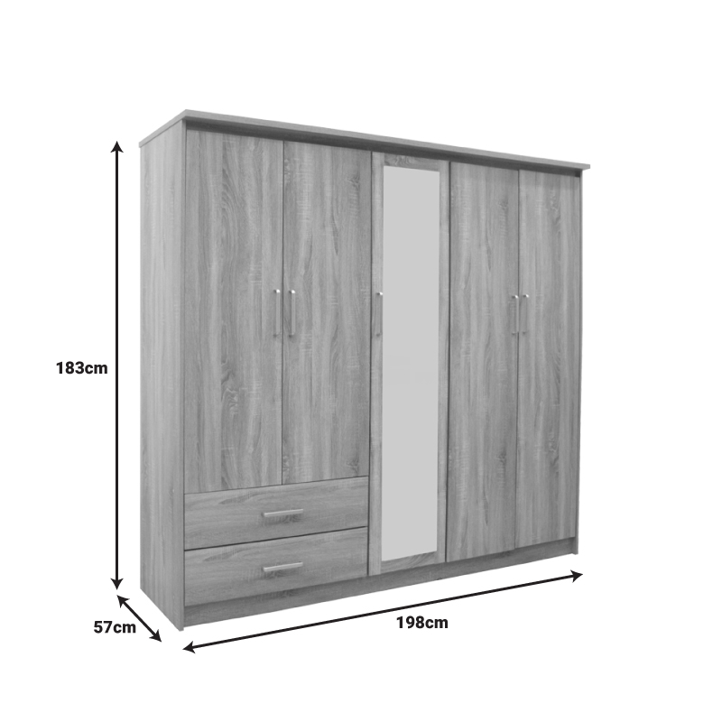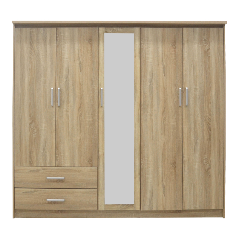 Ντουλάπα ρούχων πεντάφυλλη OLYMPUS pakoworld σε sonoma απόχρωση 198x57x183εκ Αναζητάτε την υψηλή ποιότητα κατασκευής σε συνδυασμό με την εργονομία και την πρακτικότητα για το σπίτι σας; Αν ναι, τότε η ντουλάπα Olympus είναι αυτό που χρειάζεστε.Σχεδιασμένη με φινέτσα ώστε να μπορεί να «σταθεί» οπουδήποτε, προσφέρει μεγάλους χώρους αποθήκευσης και οργάνωσης, καθώς και δύο συρόμενα συρτάρια στο κάτω μέρος.Ντουλάπα Olympus και βάλτε τάξη στο χάος. Ιδανική και για επαγγελματική χρήση.Τεχνικά χαρακτηριστικά: Σκελετός κατασκευασμένος από μοριοσανίδα με επένδυση paper wood υψηλής ποιότητας, με αντοχή στην καταπόνηση, την φθορά και τον χρόνο. Προσφέρεται σε sonoma απόχρωση. Περιλαμβάνει δεξιά και αριστερά δύο διπλά φύλλα με εσωτερική ράγα για κρεμάστρες, το ένα κάτω έχει δύο μεγάλα συρόμενα συρτάρια, ενώ το άλλο φέρει εσωτερικό ράφι. Στο κέντρο της σύνθεσης υπάρχει στενή/μονή ντουλάπα με εξωτερικό καθρέφτη και εσωτερικά τρία ράφια. Οι ιδανικοί χώροι για την αποθήκευση ρούχων και αξεσουάρ. Ο χρωματικός συνδυασμός και η λεπτομέρεια του μεταλλικού χρώματος στα πόμολα απογειώνει το τελικό αισθητικό αποτέλεσμα. Συνδυάζεται αρμονικά με τα υπόλοιπα προϊόντα της ίδιας σειράς.Διάσταση προϊόντος: Μήκος: 198 εκ. Βάθος: 57 εκ. Ύψος: 183 εκ.Πληροφορίες υλικών: Μοριοσανίδα (Chipboard): Η μοριοσανίδα, γνωστή ως chipboard, είναι ένα σύνθετο ξύλινο υλικό που κατασκευάζεται από μικρά κομματάκια ξύλου, συνήθως πεύκου ή ελάτης, κολλημένα μαζί υπό υψηλή πίεση και θερμοκρασία με τη χρήση ρητινών. Χρησιμοποιείται ευρέως στην κατασκευή επίπλων, εσωτερικών επιφανειών και δομικών εφαρμογών. LPL DECOR PAPER : Το LPL (Low-Pressure Laminate) Decor Paper είναι ένα υλικό που χρησιμοποιείται ευρέως για τη διακόσμηση επιφανειών, όπως επίπλων, πορτών, πατωμάτων και άλλων επιφανειών εσωτερικής διακόσμησης. Είναι ένας τύπος διακοσμητικού χαρτιού που εμποτίζεται με ρητίνες για να γίνει ανθεκτικό και να αποκτήσει γυαλάδα. Στην συνέχεια, εφαρμόζεται σε υποστρώματα όπως MDF (Medium-density fibreboard/ινοσανίδα) ή κόντρα πλακέ και επεξεργάζεται υπό χαμηλή πίεση και θερμότητα για να παράγει προϊόντα, όπως επιφάνειες επίπλων. Είναι διαθέσιμο σε μια ευρεία ποικιλία χρωμάτων, σχεδίων και υφών που μπορούν να αναπαράγουν φυσικά υλικά όπως ξύλο, μάρμαρο και γρανίτη.Οδηγίες συντήρησης: Μοριοσανίδα (Chipboard): Για τον καθαρισμό της μοριοσανίδας, μπορείτε να χρησιμοποιήσετε ένα μαλακό πανί ελαφρά εμποτισμένο με νερό και ήπιο απορρυπαντικό. Αποφύγετε την υπερβολική χρήση νερού και διατηρήστε την επιφάνεια στεγνή μετά τον καθαρισμό. LPL Decor Paper: Οι επιφάνειες με επένδυση LPL είναι εύκολες στον καθαρισμό με ήπια απορρυπαντικά και μαλακό πανί. Συνίσταται να αποφεύγεται η επαφή με υγρά στοιχεία.Παρατηρήσεις: Το προϊόν παραδίδεται αμοντάριστο, σε εργοστασιακή συσκευασία και με αναλυτικό οδηγό συναρμολόγησης. Η χρωματική απόχρωση του προϊόντος ενδέχεται να διαφέρει ελαφρώς σε σχέση με την φωτογραφική απεικόνισή του στην οθόνη σας.