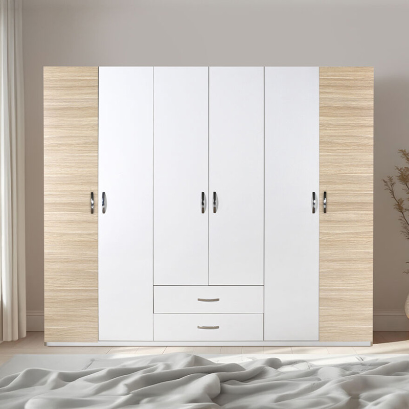 Ντουλάπα ρούχων Dormie pakoworld εξάφυλλη με συρτάρια σε λευκή απόχρωση 206x52x213εκ Αναβαθμίστε τον αποθηκευτικό σας χώρο με την κομψή και ευέλικτη ντουλάπα Dormie . Σχεδιασμένη για να προσφέρει μέγιστη λειτουργικότητα, αυτή η ντουλάπα διαθέτει συνολικά οκτώ πόρτες και δύο ευρύχωρα συρτάρια, καλύπτοντας κάθε ανάγκη οργάνωσης.Τεχνικά χαρακτηριστικά: Υψηλής Ποιότητας Υλικά: Κατασκευασμένη από ανθεκτική μοριοσανίδα με επίστρωση μελαμίνης (μοριοσανίδα) για μεγάλη αντοχή στον χρόνο και εύκολη συντήρηση. Μοντέρνος και Μινιμαλιστικός Σχεδιασμός: Οι καθαρές γραμμές και το λευκό ματ χρώμα προσδίδουν μια αίσθηση ηρεμίας και φωτεινότητας στον χώρο, ταιριάζοντας αρμονικά με κάθε στυλ διακόσμησης, από το πιο σύγχρονο έως το πιο κλασικό. Διαθέτει έξι πόρτες και δυο συρτάρια για μεγαλύτερη εξοικονόμιση χώρου. Λεπτομέρειες που Κάνουν τη Διαφορά: Οι διακριτικές, μεταλλικές λαβές σε σκούρο χρώμα προσθέτουν μια σύγχρονη πινελιά και ολοκληρώνουν το μινιμαλιστικό design. Ευελιξία και Προσαρμοστικότητα: Ιδανική για κρεβατοκάμαρες η παιδικά δωμάτια και για επαγγελματικούς χώρους που απαιτούν λειτουργικές και αισθητικά άρτιες λύσεις αποθήκευσης. Διάσταση προϊόντος: Μήκος: 206 εκ. Πλάτος: 52 εκ. Ύψος: 213 εκ. Παρατηρήσεις: Το προϊόν παραδίδεται αμοντάριστο, σε εργοστασιακή συσκευασία και με αναλυτικό οδηγό συναρμολόγησης. Η χρωματική απόχρωση του προϊόντος ενδέχεται να διαφέρει ελαφρώς σε σχέση με την φωτογραφική απεικόνισή του στην οθόνη σας Αποκτήστε την ντουλάπα Dormie για να δημιουργήσετε έναν οργανωμένο και καλαίσθητο χώρο, χωρίς συμβιβασμούς στην ποιότητα και την πρακτικότητα.