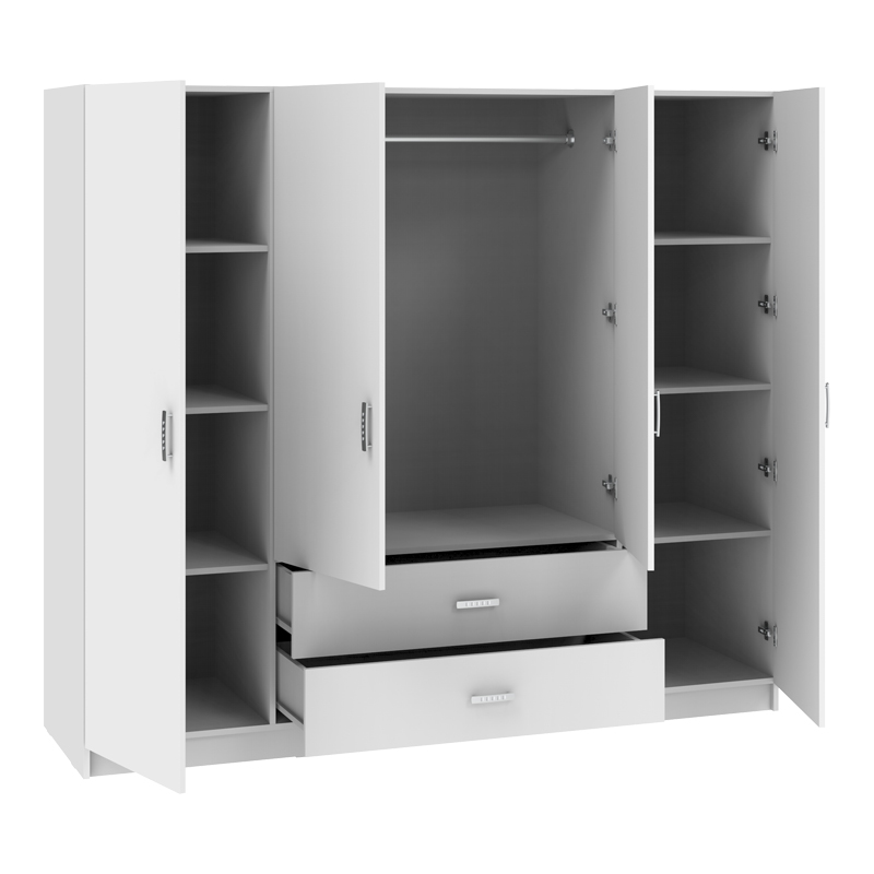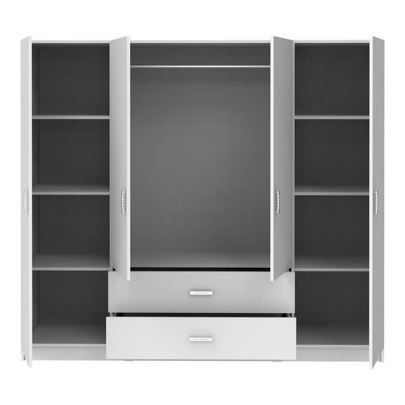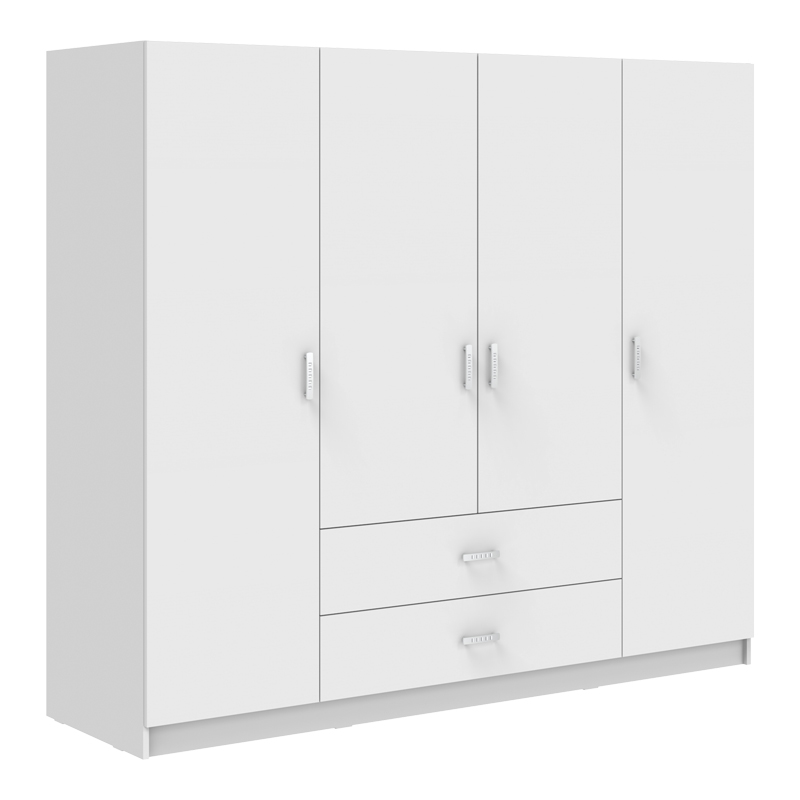 Ντουλάπα τετράφυλλη Royal pakoworld με συρτάρια λευκό 200x58x177εκ Αν θεωρείς πως ο αποθηκευτικός σου χώρος ποτέ δεν είναι αρκετός, τότε η ντουλάπα Royal είναι για σένα. Κλασσική γραμμή, με πολλαπλούς χώρους αποθήκευσης ,ιδανική για όσους αναζητούν μια οργανωμένη, κομψή και λειτουργική λύση για την αποθήκευση των αντικειμένων τους. Τεχνικά χαρακτηριστικά: Κατασκευασμένη από υψηλής ποιότητας μοριοσανίδα με επενδυση μελαμίνης , με αντοχή στην καταπόνηση και στον χρόνο. Προσφέρεται σε χρώμα λευκό. Με τέσσερα ανοιγόμενα φύλλα και δύο συρτάρια. Στο εσωτερικό περιλαμβάνει μεταλλική βέργα για κρεμάστρες και πολλαπλά ράφια.Διαστάσεις προϊόντος: Μήκος: 200 εκ. Πλάτος: 58 εκ. Ύψος: 177 εκ.Πληροφορίες υλικών: Μοριοσανίδα: Η μοριοσανίδα, γνωστή ως chipboard, είναι ένα σύνθετο ξύλινο υλικό που κατασκευάζεται από μικρά κομματάκια ξύλου, συνήθως πεύκου ή ελάτης, κολλημένα μαζί υπό υψηλή πίεση και θερμοκρασία με τη χρήση ρητινών. Χρησιμοποιείται ευρέως στην κατασκευή επίπλων, εσωτερικών επιφανειών και δομικών εφαρμογών. Κατασκευάζεται από ανακυκλωμένα υλικά και είναι ανθεκτική σε καμπύλες, τριβές και άλλες φυσικές καταπονήσεις. Μελαμίνη: Η μελαμίνη LPB (Low Pressure Melamine) είναι ένα συνθετικό υλικό που χρησιμοποιείται ευρέως στην επιφανειακή επεξεργασία μοριοσανίδας στην κατασκευή επίπλων και επιφανειών, λόγω της ανθεκτικότητάς της και της ευκολίας στη συντήρηση. Εφαρμόζεται σε υποστρώματα όπως το MDF (Medium-density fibreboard/ινοσανίδα) ή το κόντρα πλακέ OSB για να παράγει ανθεκτικές επιφάνειες.Οδηγίες συντήρησης: Μοριοσανίδα: Για τον καθαρισμό της μοριοσανίδας, μπορείτε να χρησιμοποιήσετε ένα μαλακό πανί ελαφρά εμποτισμένο με νερό και ήπιο απορρυπαντικό. Αποφύγετε την υπερβολική χρήση νερού και διατηρήστε την επιφάνεια στεγνή μετά τον καθαρισμό. Μελαμίνη: Ένα από τα πιο γνωστά υλικά στον χώρο του επίπλου είναι η μελαμίνη. Για να αφαιρέσετε τους λεκέδες από την επιφάνεια χρησιμοποιείστε ένα μαλακό πανί με χλιαρό νερό και ήπιο σαπούνι. Σκουπίστε απαλά την επιφάνεια μέχρι να αφαιρεθεί ο λεκές. Η μελαμίνη είναι ευαίσθητη στην υγρασία, επομένως είναι σημαντικό να την προστατεύετε από το νερό.Παρατηρήσεις: Το προϊόν παραδίδεται αμοντάριστο, σε εργοστασιακή συσκευασία και με αναλυτικό οδηγό συναρμολόγησης. Η χρωματική απόχρωση του προϊόντος ενδέχεται να διαφέρει ελαφρώς σε σχέση με την φωτογραφική απεικόνισή του στην οθόνη σας.