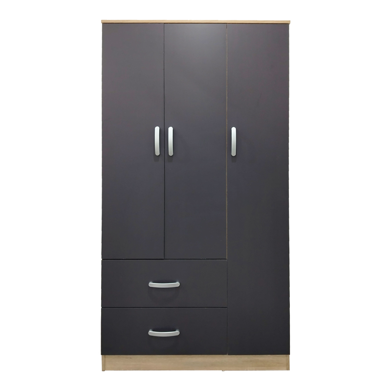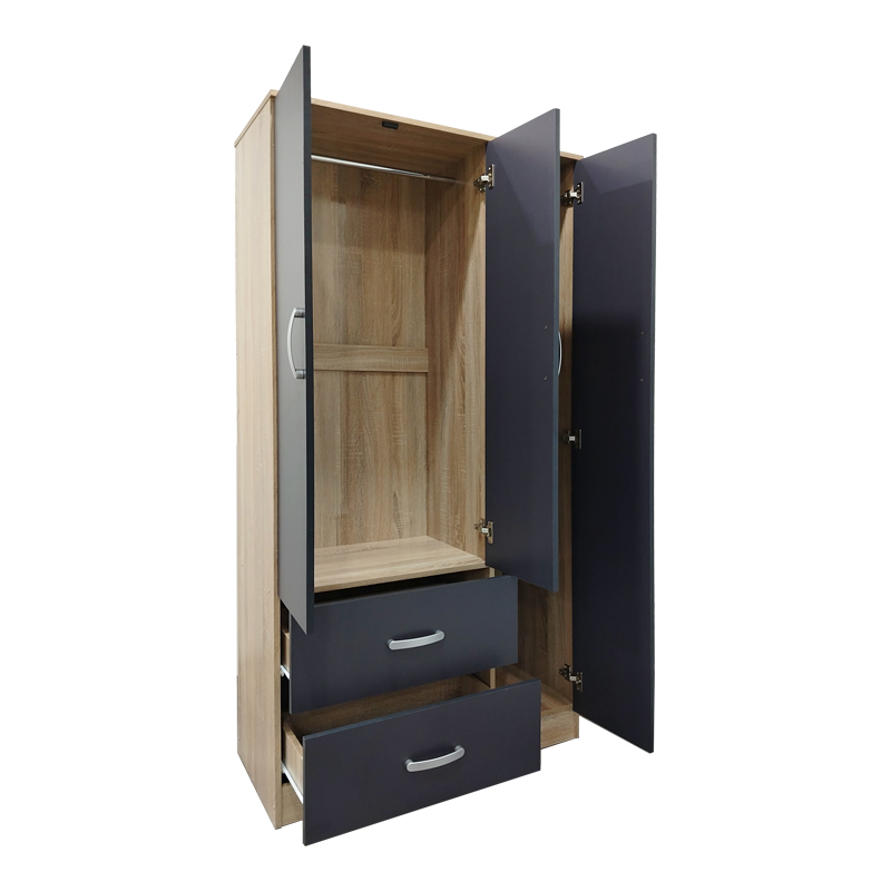 Ντουλάπα τρίφυλλη με 2 συρτάρια Lego pakoworld σε sonoma-ανθρακί απόχρωση 90x42x180εκ