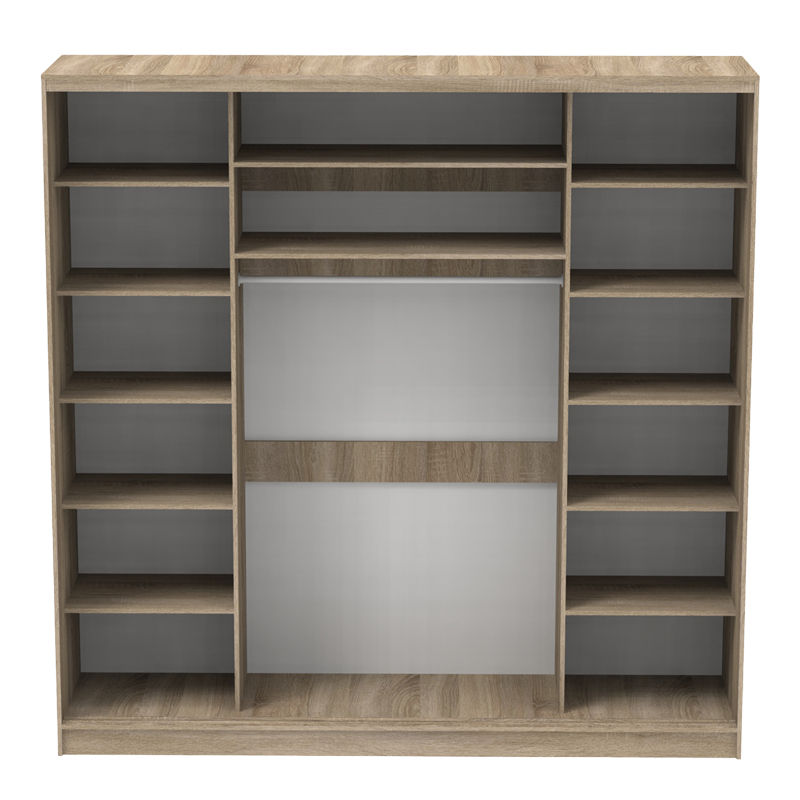 Ντουλάπα τριφυλλη συρόμενη με καθρέφτη Aparador I pakoworld σε sonoma απόχρωση 240x60x240εκ Nτουλάπα συρόμενη Aparador I με καθρέφτη – Οργάνωση και στυλ σε ενα!Εάν ψάχνετε μία ντουλάπα για να οργανώσετε τα ρούχα και τα προσωπικά σας αντικείμενα αξιοποιώντας κάθε εκατοστό του χώρου σας, η Korredor είναι για σας. Με το μοντέρνο και διαχρονικό σχεδιασμό της, θα αναδείξει το υπνοδωμάτιο σας και θα σας διευκολύνει στη καθημερινότητα σας.Τεχνικά χαρακτηριστικά: Κατασκευή από μοριοσανίδα με επένδυση μελαμίνης υψηλής ποιότητας με αντοχή στην καταπόνηση και στον χρόνο. Διαθέτει ενα μεγάλο καθρέφτη Διαθέτει δεκατέσσερα ράφια και κρεμάστρα για να απογειώσετε την οργανώση των αντικειμένων σας Προσφέρεται σε sonoma χρώμα.Διάσταση προϊόντος: Μήκος: 240 εκ. Πλάτος: 60 εκ. Ύψος: 240 εκ.Διαστάσεις πλαινών ραφιών: Μήκος : 60 εκ Πλάτος: 45 εκ Ύψος: 36.5 εκ Διαστάσεις μεσαίών ραφιών: Μήκος : 113 εκ Πλάτος: 43 εκ Ύψος: 30 εκ Πληροφορίες υλικών: Μοριοσανίδα (Chipboard): Η μοριοσανίδα, γνωστή ως chipboard, είναι ένα σύνθετο ξύλινο υλικό που κατασκευάζεται από μικρά κομματάκια ξύλου, συνήθως πεύκου ή ελάτης, κολλημένα μαζί υπό υψηλή πίεση και θερμοκρασία με τη χρήση ρητινών. Χρησιμοποιείται ευρέως στην κατασκευή επίπλων, εσωτερικών επιφανειών και δομικών εφαρμογών. Κατασκευάζεται από ανακυκλωμένα υλικά και είναι ανθεκτική σε καμπύλες, τριβές και άλλες φυσικές καταπονήσεις. Μελαμίνη (LPB): Η μελαμίνη LPB (Low Pressure Melamine) είναι ένα συνθετικό υλικό που χρησιμοποιείται ευρέως στην επιφανειακή επεξεργασία μοριοσανίδας στην κατασκευή επίπλων και επιφανειών, λόγω της ανθεκτικότητάς της και της ευκολίας στη συντήρηση. Εφαρμόζεται σε υποστρώματα όπως το MDF (Medium-density fibreboard/ινοσανίδα) ή το κόντρα πλακέ OSB για να παράγει ανθεκτικές επιφάνειες. Οδηγίες συντήρησης: Μοριοσανίδα (Chipboard): Για τον καθαρισμό της μοριοσανίδας, μπορείτε να χρησιμοποιήσετε ένα μαλακό πανί ελαφρά εμποτισμένο με νερό και ήπιο απορρυπαντικό. Αποφύγετε την υπερβολική χρήση νερού και διατηρήστε την επιφάνεια στεγνή μετά τον καθαρισμό. Μελαμίνη (LPB): Για να αφαιρέσετε τους λεκέδες από την επιφάνεια χρησιμοποιείστε ένα μαλακό πανί με χλιαρό νερό και ήπιο σαπούνι. Σκουπίστε απαλά την επιφάνεια μέχρι να αφαιρεθεί ο λεκές. Η μελαμίνη είναι ευαίσθητη στην υγρασία, επομένως είναι σημαντικό να την προστατεύετε από το νερό. Παρατηρήσεις: Το προϊόν παραδίδεται αμοντάριστο, σε εργοστασιακή συσκευασία και με αναλυτικό οδηγό συναρμολόγησης. Η χρωματική απόχρωση του προϊόντος ενδέχεται να διαφέρει ελαφρώς σε σχέση με την φωτογραφική απεικόνισή του στην οθόνη σας.