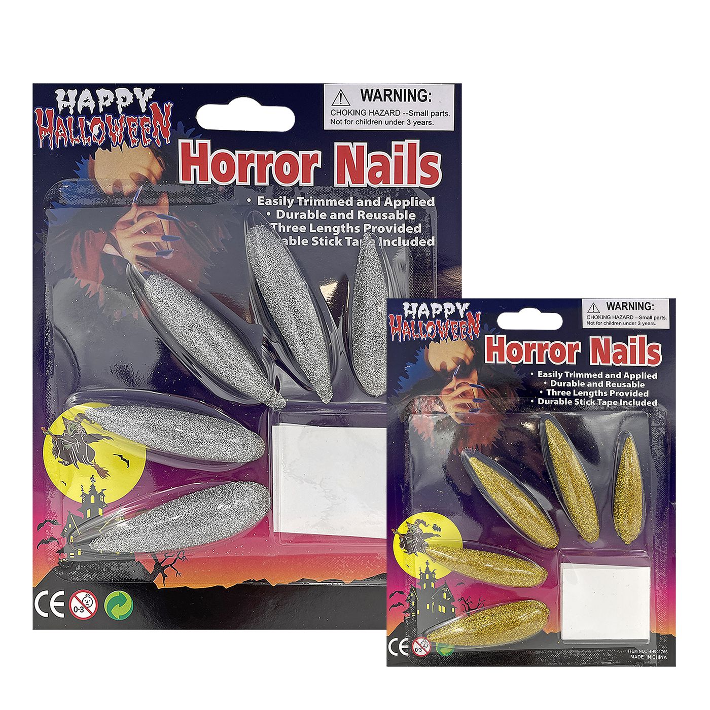 Νύχια Μακριά Χρυσόσκονη σετ=10τεμ Τεμ=~6cm Carnavalista 231111 -Σετ=10 τεμ νύχια μακριά Τεμ=~6cm