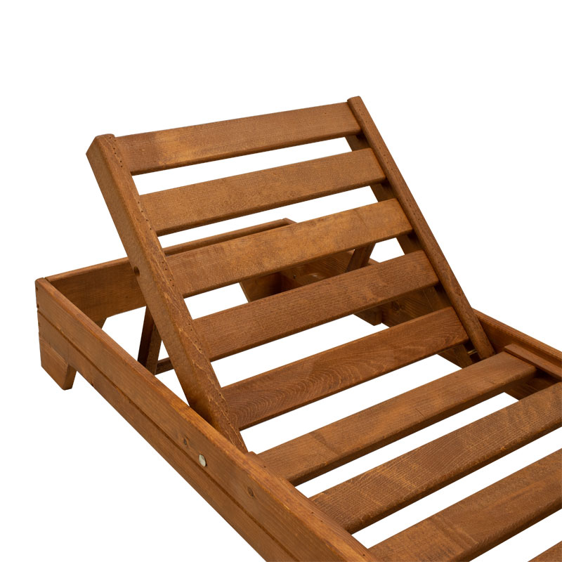 Ξαπλώστρα Sadie pakoworld μασίφ ξύλο από έλατο καρυδί Ξαπλώστρα Sadie pakoworld μασίφ ξύλο από έλατο καρυδίΞαπλώστρα Sadie. Είναι κατασκευασμένη από ανθεκτικό σκελετό μασίφ ξύλο από έλατο σε χρώμα καρυδί. Η εμποτισμένη ξυλεία με βερνίκι που χρησιμοποιείται την κάνει ιδανική για αντοχή στις εξωτερικές συνθήκες.Για επιπλέον αντοχή στο χρόνο συνίσταται η τακτική ενυδάτωση του ξύλου της ξαπλώστρας με συντηρητικά, χρώματα εμποτισμού ξύλου, ή ειδικά λάδια για να διατηρήσει την άριστη κατάσταση της. Προσφέρει τη δυνατότητα να ρυθμίσετε την κλίση του ύψος της σε πέντε θέσεις. Μπορείτε να την χρησιμοποιήσετε στην παραλία, τον κήπο για προσωπική ή επαγγελματική χρήση σε ξενοδοχεία, beach bar, καφετέριες.Μπορείτε να την συνδιάσετε με τους κωδικούς απο μαξιλάρια: 211-000002, 211-000008, 211-000009Εξωτερικές Διαστάσεις :Μήκος : 70cmΒάθος : 188cmΎψος έδρας: 21.5cmΎψος πλάτης ανά θέση 23 – 45 – 54 – 65 εκΠαρατηρήσεις:Το προιόν παραδίδεται μονταρισμένο στην εργοστασιακή του συσκευασία.Η χρωματική απόχρωση του προϊόντος ενδέχεται να διαφέρει ελαφρώς σε σχέση με την φωτογραφική απεικόνισή του στην οθόνη σας.