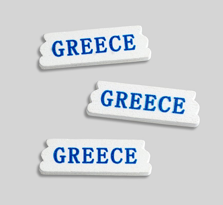 ΞΥΛΙΝΟ LOGO “GREECE” ΜΕ ΚΥΜΑΤΟΕΙΔΗΣ ΑΚΡΕΣ 3.5X1.2CM