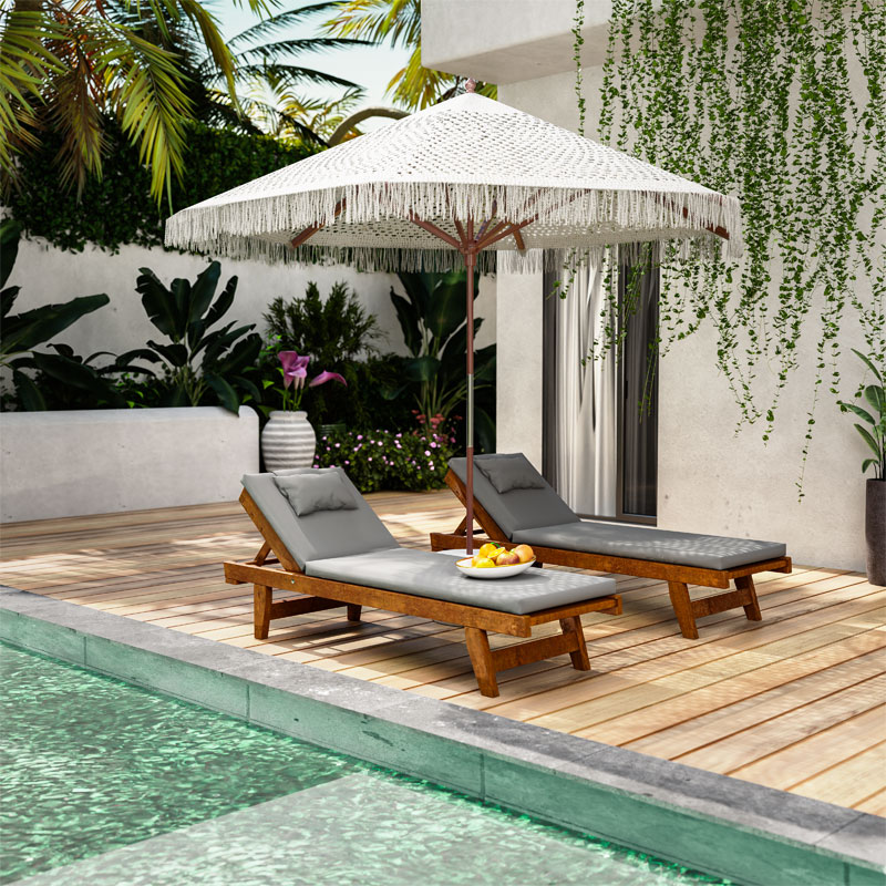 Ομπρέλα Brilie pakoworld ξύλο-μακραμέ Φ2.70×2.60 m εκρού Μία ποιοτική κατασκευή με σκελετό από φυσικό ξύλο καρυδί χρώματος και με επένδυση μακραμέ σε εκρού χρωματισμό. Ιδανική να χρησιμοποιηθεί σε κήπους, παραλίες, αίθρια, καφέ, εστιατόρια και πισίνεςΤεχνικά χαρακτηριστικά: Πλάτος: Φ2.7μ. Ομπρέλα στρόγγυλη Διάμετρος Ιστού 4εκ Φέρει 8 ακτίνες και ξύλινο ιστό για μεγαλύτερη σταθερότητα. Ύφασμα : Μακραμέ – Κατασκευασμένο από ανακυκλώσιμο βαμβάκι 70% και polyester 30% Με πρόσθετο UV για extra προστασία από την ηλιακή ακτινοβολία. Ύψος ομπρέλας χωρίς την βάση 260εκ. Η Βάση δεν συμπεριλαμβάνεται.Η ομπρέλα συνιστάται να παραμένει κλειστή όταν δεν χρησιμοποιείται για αποφυγή ανεπιθύμητης φθοράς.Παρατηρήσεις: Το προιόν παραδίδεται αμοντάριστο στην εργοστασιακή του συσκευασία. Η χρωματική απόχρωση του προϊόντος ενδέχεται να διαφέρει ελαφρώς σε σχέση με την φωτογραφική απεικόνισή του στην οθόνη σας.