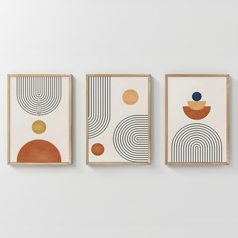 Πίνακας Lenda pakoworld τρίπτυχος με ψηφιακή εκτύπωση και πλαίσιο 33×1.5×48εκ Εισάγετε στον χώρο σας ένα έργο που συνδυάζει την τάξη των γεωμετρικών γραμμών με τη ζεστασιά των γήινων χρωμάτων, δημιουργώντας ένα δυναμικό, μοντέρνο αποτέλεσμα. Το τρίπτυχο Lenda είναι μία αισθητική δήλωση που αποτελείται από τρία ξεχωριστά, αλληλεπιδρώντα τεμάχια. Κάθε πίνακας παρουσιάζει αφηρημένα γεωμετρικά στοιχεία που γεμίζουν με λεπτές, καμπυλωτές γραμμές. Αυτή η τριπλή διάταξη προσδίδει βάθος, δυναμισμό και υψηλή αισθητική στον χώρο, ιδανική για σύγχρονα σαλόνια και γραφεία.Τεχνικά χαρακτηριστικά: Κατασκευασμένος από φυσικό αποξηραμένο ξύλο πεύκου και cardboard (3mm) υψηλής ποιότητας. Προσφέρεται σε πολύχρωμη απόχρωση.Διαστάσεις του κάθε προϊόντος: Μήκος: 33 εκ. Πλάτος: 1,5 εκ. Ύψος: 48 εκ.Πληροφορίες υλικών: Pine wood: Το πεύκο είναι ένα μαλακό ξύλο, που προέρχεται από κωνοφόρα δέντρα του γένους Pinus. Είναι ελαφρύ και εύκολο στην επεξεργασία, καθιστώντας το ιδανικό για διάφορες εφαρμογές. Έχει χαρακτηριστική εμφάνιση με φυσικά νερά και ανοίγματα, που του προσδίδουν ένα ζεστό και φυσικό αισθητικό αποτέλεσμα.Οδηγίες συντήρησης: Pine wood: Χρησιμοποιήστε ένα μαλακό πανί, ελαφρά εμποτισμένο με νερό, για να αφαιρέσετε τη σκόνη από την επιφάνεια του ξύλου. Μπορείτε επίσης να χρησιμοποιήσετε ήπιο καθαριστικό αν χρειαστεί. Τακτικά, μπορείτε να εφαρμόζετε φυσικά λάδια ξύλου στην επιφάνεια του για να το προστατεύσετε από τη φθορά. Τα λάδια ξύλου ενισχύουν τη φυσική ομορφιά του ξύλου και το προστατεύουν από τις καθημερινές φθορές.Παρατηρήσεις: Το προϊόν παραδίδεται σε εργοστασιακή συσκευασία. Η χρωματική απόχρωση του προϊόντος ενδέχεται να διαφέρει ελαφρώς σε σχέση με την φωτογραφική απεικόνισή του στην οθόνη σας.