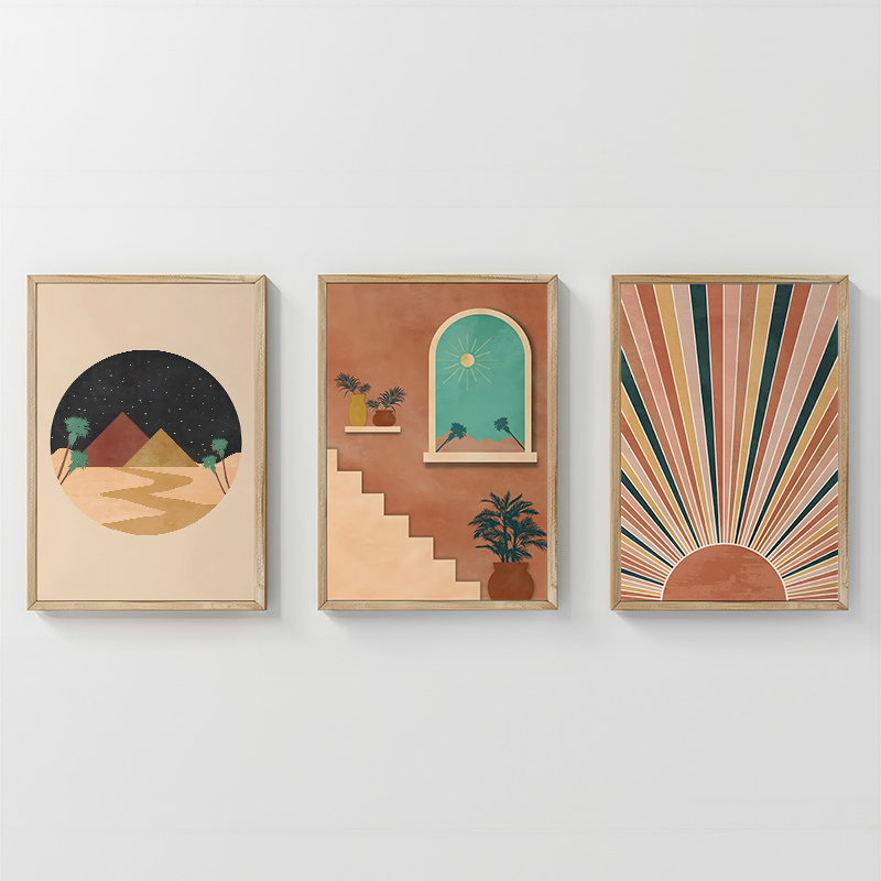 Πίνακας Venven pakoworld τρίπτυχος με ψηφιακή εκτύπωση και πλαίσιο 33×1.5×48εκ Εισάγετε στον χώρο σας ένα ταξίδι στο φως και τη ζεστασιά, μέσα από μία ρετρό, γεωμετρική σύνθεση που θυμίζει μεσογειακό καλοκαίρι. Το τρίπτυχο Venven είναι μία αισθητική δήλωση που αποτελείται από τρία ξεχωριστά, δυναμικά τεμάχια – δημιουργώντας μία αίσθηση εσωτερικής δύναμης, αρχιτεκτονικής λιτότητας και ρετρό κομψότητας.Τεχνικά χαρακτηριστικά: Κατασκευασμένος από φυσικό αποξηραμένο ξύλο πεύκου και cardboard (3mm) υψηλής ποιότητας. Προσφέρεται σε πολύχρωμη απόχρωση.Διαστάσεις του κάθε προϊόντος: Μήκος: 33 εκ. Πλάτος: 1,5 εκ. Ύψος: 48 εκ.Πληροφορίες υλικών: Pine wood: Το πεύκο είναι ένα μαλακό ξύλο, που προέρχεται από κωνοφόρα δέντρα του γένους Pinus. Είναι ελαφρύ και εύκολο στην επεξεργασία, καθιστώντας το ιδανικό για διάφορες εφαρμογές. Έχει χαρακτηριστική εμφάνιση με φυσικά νερά και ανοίγματα, που του προσδίδουν ένα ζεστό και φυσικό αισθητικό αποτέλεσμα.Οδηγίες συντήρησης: Pine wood: Χρησιμοποιήστε ένα μαλακό πανί, ελαφρά εμποτισμένο με νερό, για να αφαιρέσετε τη σκόνη από την επιφάνεια του ξύλου. Μπορείτε επίσης να χρησιμοποιήσετε ήπιο καθαριστικό αν χρειαστεί. Τακτικά, μπορείτε να εφαρμόζετε φυσικά λάδια ξύλου στην επιφάνεια του για να το προστατεύσετε από τη φθορά. Τα λάδια ξύλου ενισχύουν τη φυσική ομορφιά του ξύλου και το προστατεύουν από τις καθημερινές φθορές.Παρατηρήσεις: Το προϊόν παραδίδεται σε εργοστασιακή συσκευασία. Η χρωματική απόχρωση του προϊόντος ενδέχεται να διαφέρει ελαφρώς σε σχέση με την φωτογραφική απεικόνισή του στην οθόνη σας.