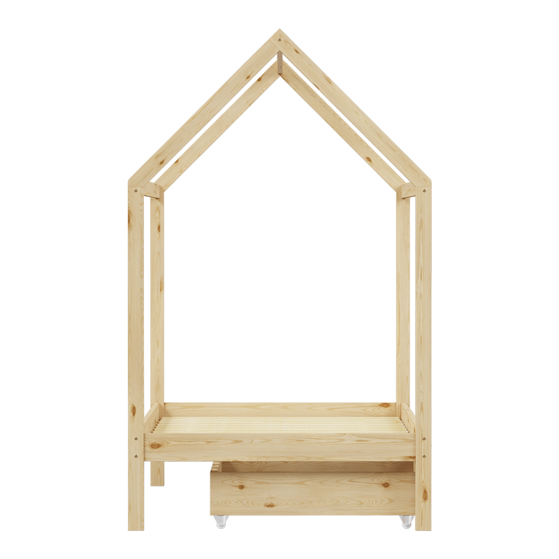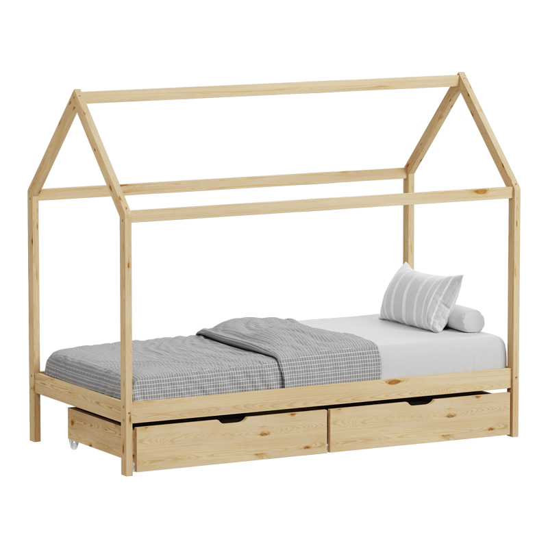 Παιδικό κρεβάτι Mellin τ. Montessori με 2 συρτάρια pakoworld ξύλο πεύκου σε φυσική απόχρωση 90×190εκ Το παιδικό κρεβάτι Mellin τύπου Montessori , έχει έναν μοντέρνο και φανταστικό σχεδιασμό, εμπνευσμένο από τη μορφή ενός σπιτιού. Οι απαλές γραμμές δημιουργούν μια αίσθηση ηρεμίας, καθιστώντας το ιδανικό για κάθε παιδικό δωμάτιο. Η στέγη του κρεβατιού προσθέτει ένα στοιχείο παιχνιδιού, μετατρέποντας το σε ένα μικρό καταφύγιο για τα παιδιά. Η προσθήκη των συρταριών προσφέρει επιπλέον αποθηκευτικό χώρο για παιχνίδια, βιβλία ή άλλα αντικείμενα.Τα κρεβάτια τύπου Montessori είναι πολύ χαμηλά, με το στρώμα να βρίσκεται σε μικρό ύψος από το πάτωμα, για να είναι εύκολα προσβάσιμα.H μέθοδος Montessori επικεντρώνεται στο ότι ένα παιδί πρέπει να έχει ελευθερία κινήσεων, να νιώθει ασφάλεια και να μπορεί να μετακινείται μόνο του. Έτσι γίνεται δυναμικό, ανεξάρτητο και αποκτά αυτοπεποίθηση.Το σχήμα σπιτάκι, εκτός από τάση στη διακόσμηση των παιδικών δωματίων, δίνει στο παιδί τη δυνατότητα να παίζει και να ονειρεύεται σε έναν χώρο που θεωρεί αποκλειστικά δικό του.Τεχνικά χαρακτηριστικά: Κατασκευασμένο από ξύλο πεύκου και plywood με αντοχή στη φθορά και στο χρόνο. Η στέγη του κρεβατιού προσθέτει ένα στοιχείο φαντασίας, μετατρέποντας το σε ένα μικρό καταφύγιο για τα παιδιά. Με δύο συρτάρια για εξτρα χώρο αποθήκευσης Κατάλληλο για στρώμα 90×190 εκ. (δεν περιλαμβάνεται) Προσφέρεται σε φυσικό χρώμα. Βάρος αντοχής 120kg.Διαστάσεις προϊόντος: Μήκος: 196 εκ. Πλάτος: 97 εκ. Ύψος: 160.5 εκ.Εσωτερική διάσταση συρταριού: Μήκος: 87.5 εκ. Πλάτος: 58.5 εκ. Ύψος: 12 εκ.Πληροφορίες υλικών: Ξύλο Πεύκου :Το πεύκο είναι ένα μαλακό ξύλο, που προέρχεται από κωνοφόρα δέντρα του γένους Pinus. Είναι ελαφρύ και εύκολο στην επεξεργασία, καθιστώντας το ιδανικό για διάφορες εφαρμογές. Έχει χαρακτηριστική εμφάνιση με φυσικά νερά και ανοίγματα, που του προσδίδουν ένα ζεστό και φυσικό αισθητικό αποτέλεσμα. Plywood: Το plywood είναι ένα σύνθετο υλικό που μοιάζει με ξύλο, κατασκευασμένο από ανακυκλωμένα πλαστικά. Χρησιμοποιείται συνήθως για την κατασκευή εξωτερικών επίπλων, όπως τραπέζια, καρέκλες, ξαπλώστρες και παγκάκια. Είναι εξαιρετικά ανθεκτικό στις καιρικές συνθήκες. Οδηγίες συντήρησης: Ξύλο πεύκου: Χρησιμοποιήστε ένα μαλακό πανί, ελαφρά εμποτισμένο με νερό, για να αφαιρέσετε τη σκόνη από την επιφάνεια του ξύλου. Μπορείτε επίσης να χρησιμοποιήσετε ήπιο καθαριστικό αν χρειαστεί. Τακτικά, μπορείτε να εφαρμόζετε φυσικά λάδια ξύλου στην επιφάνεια του για να το προστατεύσετε από τη φθορά. Τα λάδια ξύλου ενισχύουν τη φυσική ομορφιά του ξύλου και το προστατεύουν από τις καθημερινές φθορές. Plywood: Αρχίστε από το να αφαιρείτε τη σκόνη και τα υπολείμματα από την επιφάνεια του plywood με ένα μαλακό πανί ή βούρτσα. Μπορείτε να χρησιμοποιήσετε και ηλεκτρική σκούπα με απαλή βούρτσα, για καλύτερα αποτελέσματα. Αν χρειάζεται βαθύ καθάρισμα, εμποτίστε ένα μαλακό πανί με νερό και ήπιο απορρυπαντικό ή σαπούνι. Αν το Plywood χρησιμοποιείται σε εξωτερικούς χώρους ή σε χώρους υψηλής υγρασίας, εφαρμόστε το κατάλληλο φινίρισμα ή ένα κάλυμμα για να προστατεύσετε την επιφάνεια από επιπλέον ζημιές. Παρατηρήσεις: Το προϊόν παραδίδεται σε εργοστασιακή συσκευασία και με αναλυτικό οδηγό συναρμολόγησης. Η χρωματική απόχρωση του προϊόντος ενδέχεται να διαφέρει ελαφρώς σε σχέση με την φωτογραφική απεικόνισή του στην οθόνη σας.