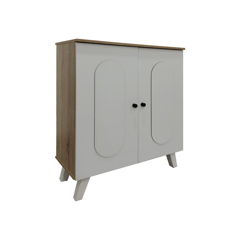 Παπουτσοθήκη-ντουλάπι Cathi pakoworld σε λευκή-sonoma απόχρωση 80x34x95εκ Η κομψή παπουτσοθήκη Cathi συνδυάζει μοντέρνο design με πρακτική λειτουργικότητα. Διαθέτει δύο πόρτες με χαρακτηριστικά οβάλ σχήματα και διακριτικά στρογγυλά χερούλια, προσδίδοντας μια παιχνιδιάρικη αλλά εκλεπτυσμένη αισθητική στον χώρο σας. Το εσωτερικό της προσφέρει αποθηκευτικό χώρο για την τακτοποίηση των υποδημάτων σας. Η χρωματική αντίθεση δημιουργεί ένα ευχάριστο οπτικό ενδιαφέρον. Στηρίζεται σε τέσσερα πόδια που ενισχύουν το μοντέρνο στυλ και προσφέρουν σταθερότητα.Αυτή η παπουτσοθήκη αποτελεί μια καλαίσθητη και λειτουργική λύση για την είσοδο ή οποιονδήποτε άλλο χώρο επιθυμείτε να διατηρήσετε οργανωμένο με στυλ.Τεχνικά χαρακτηριστικά: Σκελετός κατασκευασμένος από μοριοσανίδα υψηλής ποιότητας 15mm, με αντοχή στην καταπόνηση, την φθορά και τον χρόνο. Προσφέρεται σε μια υπέροχη διχρωμία λευκό – sonomaΔιάσταση προϊόντος: Μήκος: 80 εκ. Πλάτος: 34 εκ. Ύψος: 95 εκ.Παρατηρήσεις: Το προϊόν παραδίδεται αμοντάριστο, σε εργοστασιακή συσκευασία και με αναλυτικό οδηγό συναρμολόγησης. Η χρωματική απόχρωση του προϊόντος ενδέχεται να διαφέρει ελαφρώς σε σχέση με την φωτογραφική απεικόνισή του στην οθόνη σας.
