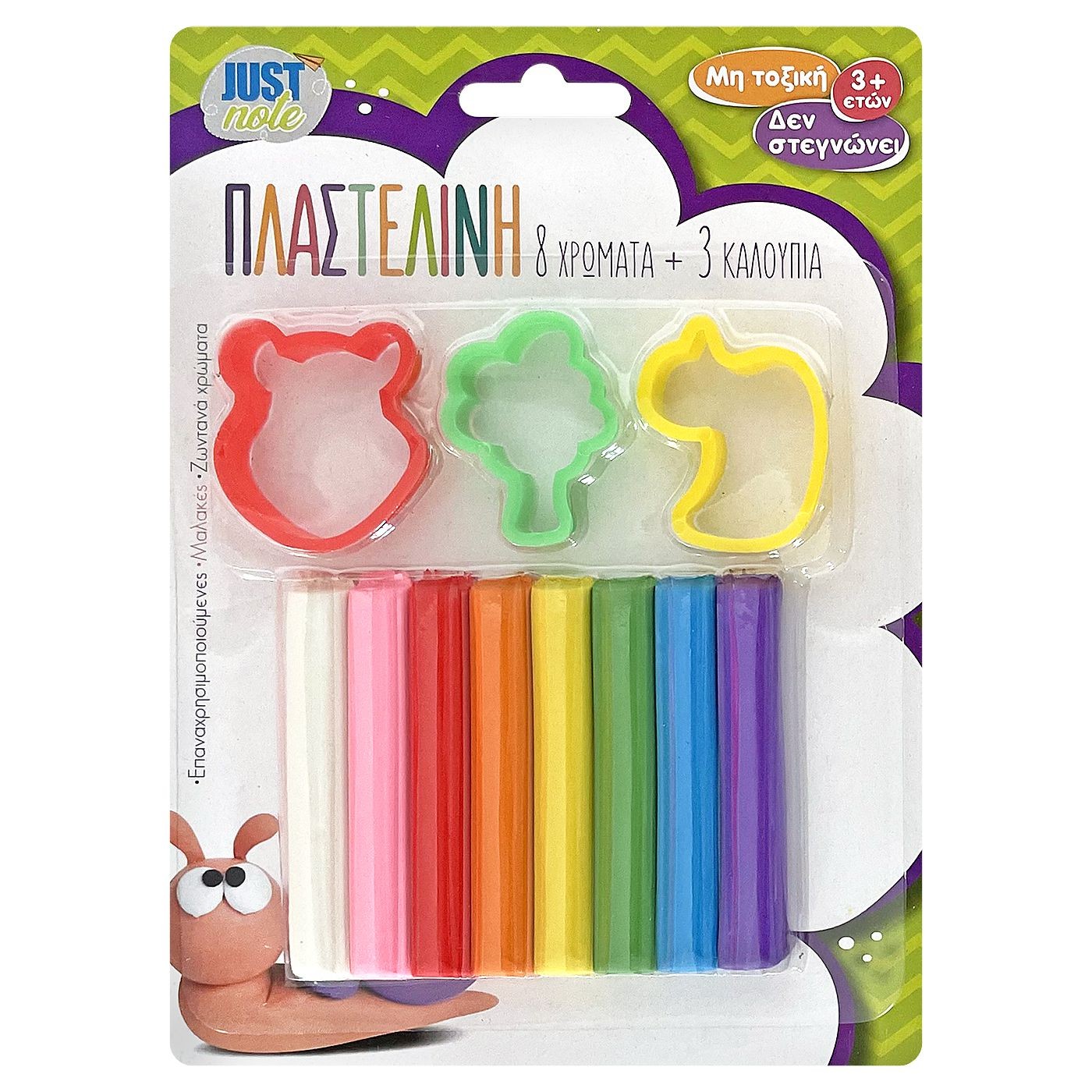 Πλαστελίνη & Καλούπια σετ=8 Χρώματα 100g net JustNote 7069 Σετ=8 χρώματα & 3 καλούπια 100g net