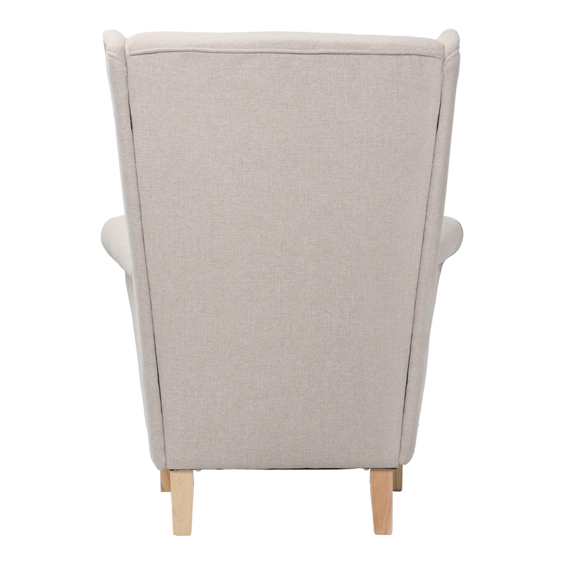 Πολυθρόνα – μπερζέρα Malei pakoworld ύφασμα σε κρεμ απόχρωση-ξύλινα πόδια 85x93x100εκ Ο μοναδικός συνδυασμός των καμπύλων γραμμών και της κλασικής εμφάνισης, προσφέρει μια αίσθηση πολυτέλειας και άνεσης και θα δημιουργήσει μια ατμόσφαιρα χαλάρωσης. Η Malei είναι ιδανική για το σαλόνι και σίγουρα θα αποτελέσει το επίκεντρο του χώρου σου!Τεχνικά χαρακτηριστικά: Σκελετός κατασκευασμένος από ενισχυμένο plywood. Το plywood είναι δημοφιλές λόγω της αντοχής και της σταθερότητάς του. Χρησιμοποιείται ευρέως σε κατασκευές επίπλων, εσωτερικής διακόσμησης, οικοδομικών έργων και πολλών άλλων εφαρμογών. Επιπλέον, η εμφάνιση και η υφή του plywood το καθιστούν επίσης δημοφιλές για μοντέρνα και μινιμαλιστικά σχέδια επίπλων και εσωτερικής διακόσμησης. Πλάτη και έδρα εσωτερικά επενδεδυμένες με foam υψηλής ανθεκτικότητας και αντοχών στη φθορά. Επένδυση με ύφασμα ασυναγώνιστης ποιότητας Στήριξη σε ξύλινα πόδια σε φυσική αποχρωση Προσφέρεται σε κρεμ χρώμαΔιάσταση προϊόντος: Μήκος: 85 εκ. Πλάτος: 93 εκ. Ύψος: 100 εκ.Πληροφορίες υλικών: Plywood: Το plywood είναι ένα σύνθετο υλικό που μοιάζει με ξύλο, κατασκευασμένο από ανακυκλωμένα πλαστικά. Χρησιμοποιείται συνήθως για την κατασκευή εξωτερικών επίπλων, όπως τραπέζια, καρέκλες, ξαπλώστρες και παγκάκια. Είναι εξαιρετικά ανθεκτικό στις καιρικές συνθήκες. Υφασμα: Το ύφασμα είναι ένα ευέλικτο υλικό που κατασκευάζεται από την ύφανση, πλέξιμο, βελονιά ή συγκόλληση ινών. Αυτές οι ίνες μπορεί να είναι φυσικές, όπως βαμβάκι, μαλλί ή μετάξι, ή συνθετικές, όπως πολυεστέρας ή νάιλον. Η ύφανση των ινών δημιουργεί ένα δίκτυο που δίνει στο ύφασμα τις ιδιότητές του, όπως η αντοχή, η απαλότητα, η διαπνοή και η ελαστικότητα. Υπάρχουν άπειρες ποικιλίες υφασμάτων, καθεμιά με τα δικά της μοναδικά χαρακτηριστικά και χρήσεις.Συντήρηση υλικών: Plywood:Αρχίστε από το να αφαιρείτε τη σκόνη και τα υπολείμματα από την επιφάνεια του plywood με ένα μαλακό πανί ή βούρτσα. Μπορείτε να χρησιμοποιήσετε και ηλεκτρική σκούπα με απαλή βούρτσα, για καλύτερα αποτελέσματα. Αν χρειάζεται βαθύ καθάρισμα, εμποτίστε ένα μαλακό πανί με νερό και ήπιο απορρυπαντικό ή σαπούνι. Αν το Plywood χρησιμοποιείται σε εξωτερικούς χώρους ή σε χώρους υψηλής υγρασίας, εφαρμόστε το κατάλληλο φινίρισμα ή ένα κάλυμμα για να προστατεύσετε την επιφάνεια από επιπλέον ζημιές. Ύφασμα: Η συντήρηση του υφάσματος εξαρτάται από διάφορους παράγοντες, όπως το είδος της ίνας, η κατασκευή του υφάσματος και η χρήση του. Χρησιμοποιήστε ένα ήπιο απορρυπαντικό που είναι κατάλληλο για τον τύπο του υφάσματος. Αποφύγετε τη χρήση χλωρίνης ή λευκαντικών, καθώς μπορεί να βλάψουν τις ίνες.Παρατηρήσεις: Το προϊόν παραδίδεται αμοντάριστο σε εργοστασιακή συσκευασία με αναλυτικό οδηγό συναρμολόγησης. Η χρωματική απόχρωση του προϊόντος ενδέχεται να διαφέρει ελαφρώς σε σχέση με την φωτογραφική απεικόνισή του στην οθόνη σας.