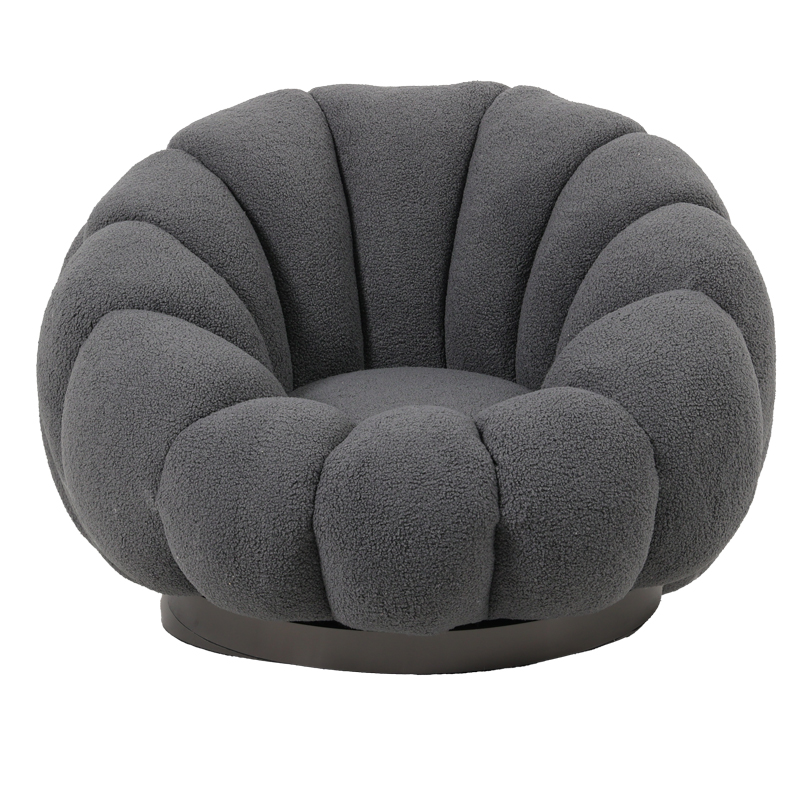 Πολυθρόνα περιστρεφόμενη Nester pakoworld μπουκλέ ύφασμα σε γκρι απόχρωση 98x97x69εκ
