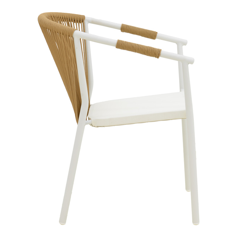 Πολυθρόνα στοιβαζόμενη Convince pakoworld αλουμίνιο λευκό σκελετό-textilene-pe rattan σε φυσική απόχρωση 56x63x82εκ