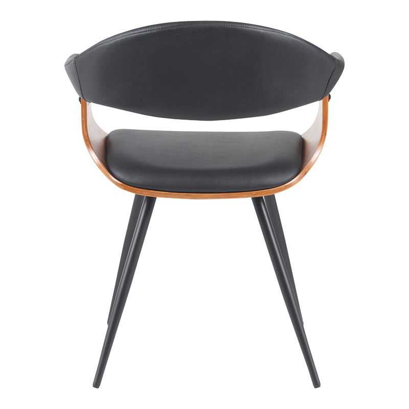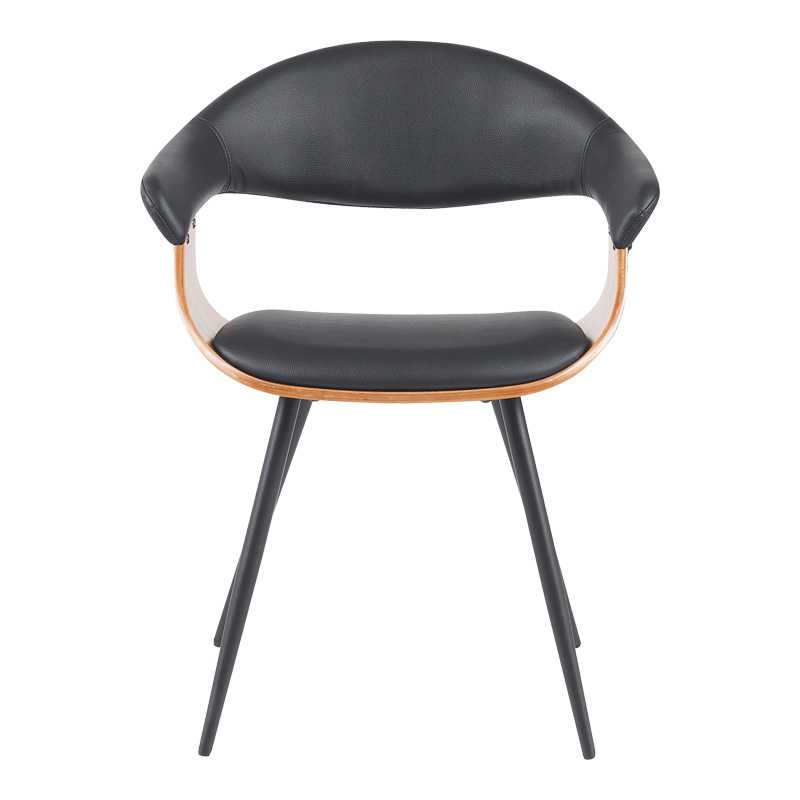 Πολυθρόνα Austen pakoworld PU μαύρο-ξύλο καρυδί-μέταλλο μαύρο 58x55x77εκ Εμπλουτίστε τον χώρο σας με την κομψή και άνετη πολυθρόνα Austen. Η εργονομικά σχεδιασμένη καμπύλη πλάτη και το άνετο κάθισμα εξασφαλίζουν ευχάριστη εμπειρία για τους επισκέπτες σας. Οι λεπτές, αλλά στιβαρές μαύρες μεταλλικές βάσεις ολοκληρώνουν την αισθητική, καθιστώντας την ιδανική επιλογή για την τραπεζαρία, το γραφείο ή και άλλους επαγγελματικούς ή οικιακούς χώρους που επιδιώκουν να συνδυάσουν στυλ και λειτουργικότητα.Τεχνικά χαρακτηριστικά: Πλάτη που στηρίζει τη σπονδυλική στήλη. Στήριξη σε τέσσερα μεταλλικά πόδια χρώματος μαύρο Πλάτη και έδρα κατασκευασμένες από ενισχυμένο ξύλινο σκελετό σε καρυδί χρώμα με μεγάλη ανθεκτικότητα και αντοχές στη φθορά. Επένδυση με τεχνόδερμα ασυναγώνιστης ποιότητας με αντοχή στη φθορά και στις τριβές. Προσφέρεται σε χρώμα μαύρο .Διαστάσεις προϊόντος: Μήκος: 55,5 εκ. Πλάτος: 53,5 εκ. Ύψος: 77 εκ.Παρατηρήσεις: Το προϊόν παραδίδεται αμοντάριστο, σε εργοστασιακή συσκευασία και με αναλυτικό οδηγό συναρμολόγησης. Η χρωματική απόχρωση του προϊόντος ενδέχεται να διαφέρει ελαφρώς σε σχέση με την φωτογραφική απεικόνισή του στην οθόνη σας.