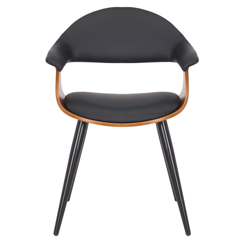 Πολυθρόνα Austen pakoworld PU μαύρο-πόδι καρυδί Αναζητάς μία πολυθρόνα Mid century modern design για να διακοσμήσεις τη κουζίνα, το σαλόνι ή τις λοιπούς χώρους του σπιτιού σου; Αν ναι, τότε η Austen είναι η καλύτερη επιλογή σου.Πρόκειται για μία πολυθρόνα που αποτελεί την κορύφωση του πρωτοποριακού industrial design, συνδυάζοντας αρμονικά τα ανθεκτικά υλικά του σήμερα με την πολυτέλεια και την εργονομία.Ταιριαστή σε κάθε μοντέρνο σπίτι και επαγγελματικό χώρο. Τεχνικά χαρακτηριστικά: Χαμηλή πλάτη που στηρίζει τη σπονδυλική στήλη. Στήριξη σε τέσσερα μεταλλικά πόδια χρώματος μαύρο Πλάτη και έδρα κατασκευασμένες από ενισχυμένο ξύλινο σκελετό σε καρυδί χρώμα με μεγάλη ανθεκτικότητα και αντοχές στη φθορά. Επένδυση με τεχνόδερμα ασυναγώνιστης ποιότητας με αντοχή στη φθορά και στις τριβές. Προσφέρεται σε χρώμα μαύρο ματ.Διαστάσεις προϊόντος: Μήκος: 56 εκ. Πλάτος: 52 εκ. Ύψος: 81 εκ. Ύψος έδρας:46 εκ.Παρατηρήσεις: Το προϊόν παραδίδεται αμοντάριστο, σε εργοστασιακή συσκευασία και με αναλυτικό οδηγό συναρμολόγησης. Η χρωματική απόχρωση του προϊόντος ενδέχεται να διαφέρει ελαφρώς σε σχέση με την φωτογραφική απεικόνισή του στην οθόνη σας.