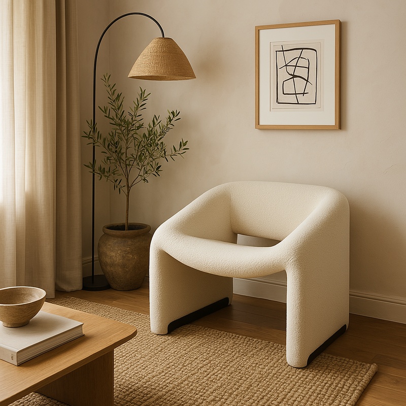 Πολυθρόνα Clous pakoworld μπουκλέ ύφασμα σε εκρού απόχρωση 86x77x73.5εκ