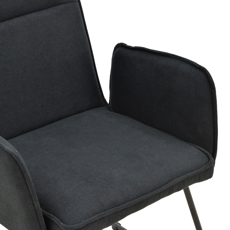 Πολυθρόνα Essential pakoworld ύφασμα μαύρο-πόδι μαύρο μεταλλικό 55.5x59x89εκ Η πολυθρόνα Essential συνδυάζει λιτές γραμμές με λειτουργικότητα, προσφέροντας μια πρακτική και κομψή λύση για τη τραπεζαρία σας. Η απλή, αλλά στιβαρή κατασκευή του, με μεταλλικά πόδια εξασφαλίζει σταθερότητα και ανθεκτικότητα.Ιδανική ακόμη και για χώρους αναμονής με υψηλή επισκεψιμότητα, βοηθητικούς χώρους γραφείου όπου η πρακτικότητα υπερτερεί της διακοσμητικής πολυτέλειας, το κάθισμα αυτό αποτελεί μια αξιόπιστη επιλογή.Τεχνικά χαρακτηριστικά: Επένδυση με ύφασμα εξαιρετικής ποιότητας χρώματος μαύρο Σκελετός από μεταλλική κατασκευή υψηλής αντοχής, σε μαύρο χρώμα. . Ενδείκνυται για εσωτερικούς χώρους, αλλά και για χρήση: γραφείου, καταλυμάτων, Rbnb κ.α.Διάσταση προϊόντος Μήκος: 55,5 εκ. Πλάτος: 59 εκ. Ύψος: 89 εκ. Ύψος έδρας: 49 εκΠαρατηρήσεις: Το προϊόν παραδίδεται αμοντάριστο στην εργοστασιακή του συσκευασία και συνοδεύεται με αναλυτικό οδηγό συναρμολόγησης. Η χρωματική απόχρωση του προϊόντος ενδέχεται να διαφέρει ελαφρώς σε σχέση με την φωτογραφική απεικόνισή του στην οθόνη σας