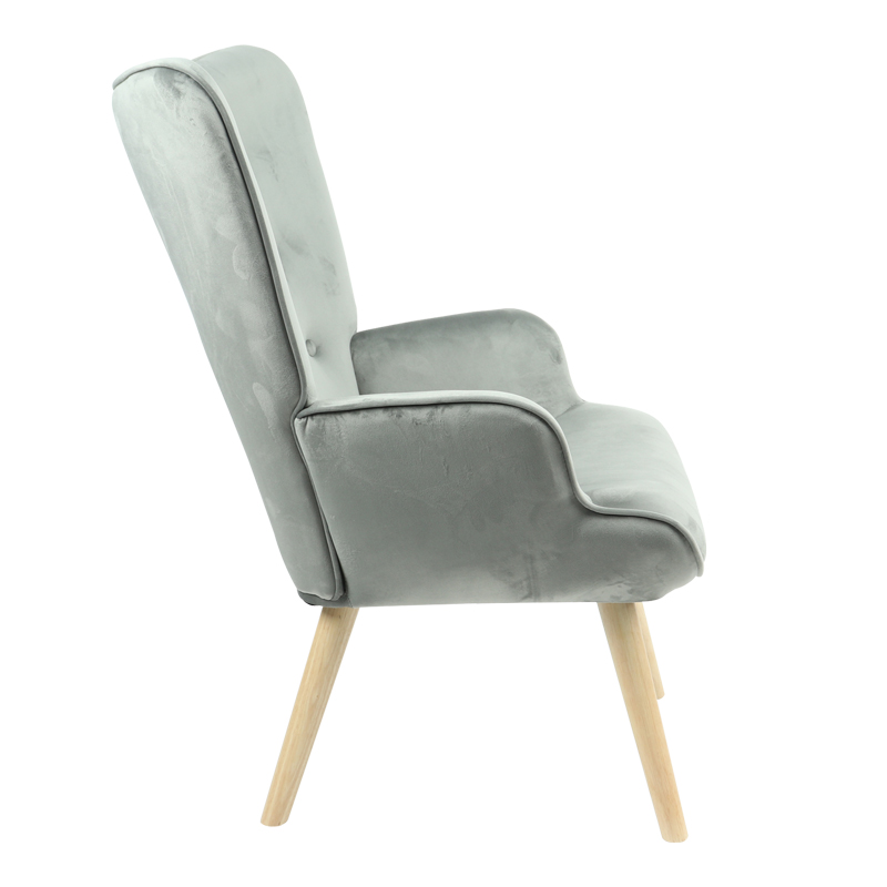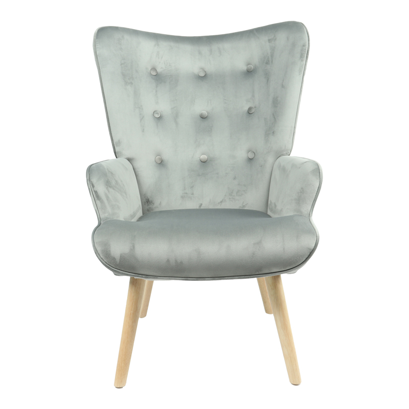 Πολυθρόνα Fluffy pakoworld βελούδο γκρι-φυσικό πόδι 75x69x96εκ Πολυθρόνα Fluffy pakoworld βελούδο γκρι-φυσικό πόδι 75x69x96εκΗ πολυθρόνα μπερζέρα Fluffy με διαχρονική πολυτέλεια, είναι φτιαγμένη από μασίφ ξύλο επενδυμένη με ύφασμα υψηλής ποιότητας σε χρώμα γκρι. Απολαύστε στιγμές χαλάρωσης σε μια εντυπωσιακή κατασκευή. Τεχνικά χαρακτηριστικά:*Σκελετός κατασκευασμένος από ξύλο επενδεδυμένο με foam και ελατήρια για μεγαλύτερη ελαστικότητα, ανθεκτικότητα και αντοχή στον χρόνο.*Η ψηλή πλάτη αγκαλιάζει και ακολουθεί την σπονδυλική στήλη.*Επένδυση με γκρι βελούδο ύφασμα υψηλής ποιότητας με μεγάλη αντοχή στη τριβή και στη φθορά.*Φέρει στήριξη σε τέσσερα ποδαράκια από ξύλο σε φυσική απόχρωση.Διάσταση προϊόντος:Μήκος: 75εκ.Πλάτος: 69εκ.Ύψος: 96εκ.Παρατηρήσεις:Το προϊόν παραδίδεται στην εργοστασιακή του συσκευασία και χρειάζεται μοντάρισμα.Η χρωματική απόχρωση του προϊόντος ενδέχεται να διαφέρει ελαφρώς σε σχέση με την φωτογραφική απεικόνισή του στην οθόνη σας.