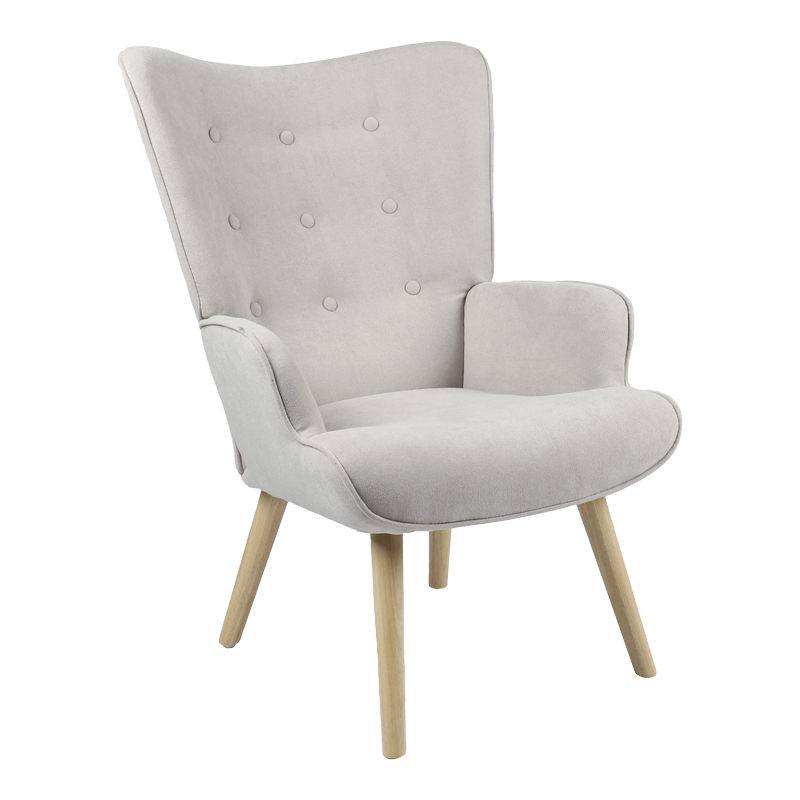 Πολυθρόνα Fluffy pakoworld ύφασμα ανοιχτό γκρι-φυσικό πόδι 75x69x96εκ Πολυθρόνα Fluffy pakoworld ύφασμα ανοιχτό γκρι-φυσικό πόδι 75x69x96εκΗ πολυθρόνα μπερζέρα Fluffy με διαχρονική πολυτέλεια, είναι φτιαγμένη από μασίφ ξύλο επενδυμένη με ύφασμα υψηλής ποιότητας σε χρώμα ανοιχτό γκρι. Απολαύστε στιγμές χαλάρωσης σε μια εντυπωσιακή κατασκευή. Τεχνικά χαρακτηριστικά:*Σκελετός κατασκευασμένος από ξύλο επενδεδυμένο με foam και ελατήρια για μεγαλύτερη ελαστικότητα, ανθεκτικότητα και αντοχή στον χρόνο.*Η ψηλή πλάτη αγκαλιάζει και ακολουθεί την σπονδυλική στήλη.*Επένδυση με ανοιχτό γκρι ύφασμα υψηλής ποιότητας με μεγάλη αντοχή στη τριβή και στη φθορά.*Φέρει στήριξη σε τέσσερα ποδαράκια από ξύλο σε φυσική απόχρωση.Διάσταση προϊόντος:Μήκος: 75εκ.Πλάτος: 69εκ.Ύψος: 96εκ.Ύψος έδρας: 43 εκΎψος πλάτης: 60 εκΒάθος έδρας: 46 εκΒάρος αντοχής: 120 kgΠαρατηρήσεις:Το προϊόν παραδίδεται στην εργοστασιακή του συσκευασία και χρειάζεται μοντάρισμα.Η χρωματική απόχρωση του προϊόντος ενδέχεται να διαφέρει ελαφρώς σε σχέση με την φωτογραφική απεικόνισή του στην οθόνη σας.