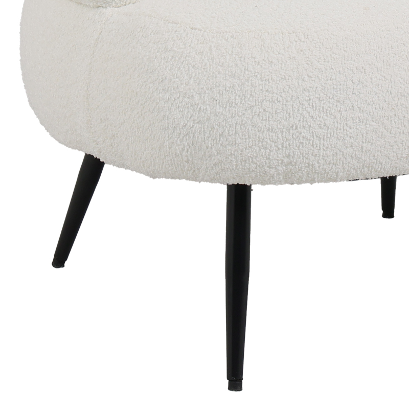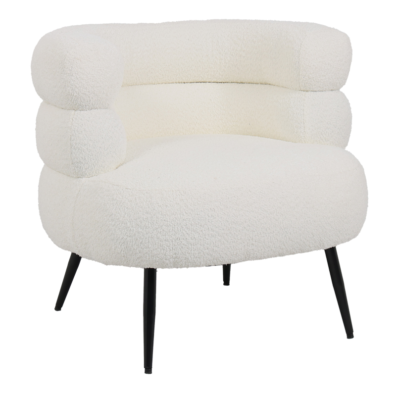 Πολυθρόνα Foleja pakoworld μπουκλέ ύφασμα σε λευκή απόχρωση με μαύρα μεταλλικά πόδια 76x75x72εκ Η πολυθρόνα Foleja είναι μια εξαιρετική επιλογή για όσους αναζητούν ένα κομμάτι επίπλου που συνδυάζει την άνεση με το στυλ. Το πρωτότυπο σχέδιο της, προσφέρει μια αίσθηση ζεστασιάς και κομψότητας που σίγουρα θα εντυπωσιάσει τους επισκέπτες σας.Τεχνικά χαρακτηριστικά: Σκελετός κατασκευασμένος από ενισχυμένο plywood. Το plywood είναι δημοφιλές λόγω της αντοχής και της σταθερότητάς του. Χρησιμοποιείται ευρέως σε κατασκευές επίπλων, εσωτερικής διακόσμησης, οικοδομικών έργων και πολλών άλλων εφαρμογών. Επιπλέον, η εμφάνιση και η υφή του plywood το καθιστούν επίσης δημοφιλές για μοντέρνα και μινιμαλιστικά σχέδια επίπλων και εσωτερικής διακόσμησης. Πλάτη και έδρα εσωτερικά επενδεδυμένες με foam υψηλής ανθεκτικότητας και αντοχών στη φθορά. Επένδυση με ύφασμα υψηλής ποιότητας , το οποίο εξασφαλίζει άνεση και αντοχή Το μοναδικό σχήμα της σε συνδυασμό με την απαλή επένδυση της, δημιουργούν ένα εντυπωσιακό οπτικό αποτέλεσμα. Μαύρα μεταλλικά πόδια που προσδίδουν μια αίσθηση πολυτέλειας και αντοχής. Προσφέρεται σε λευκό χρώμαΔιάσταση προϊόντος: Μήκος: 76 εκ. Πλάτος: 75 εκ. Ύψος: 72 εκ. Ύψος έδρας: 45 εκ. Βάθος έδρας: 46 εκ Βάρος αντοχής: 120kgΠληροφορίες υλικών: Plywood: Το plywood είναι ένα σύνθετο υλικό που μοιάζει με ξύλο, κατασκευασμένο από ανακυκλωμένα πλαστικά. Χρησιμοποιείται συνήθως για την κατασκευή εξωτερικών επίπλων, όπως τραπέζια, καρέκλες, ξαπλώστρες και παγκάκια. Είναι εξαιρετικά ανθεκτικό στις καιρικές συνθήκες. Μέταλλο: Το μέταλλο χρησιμοποιείται ευρέως στην κατασκευή επίπλων, προσφέροντας μια σειρά από πλεονεκτήματα σε σχέση με άλλα υλικά. Είναι εξαιρετικά ανθεκτικό σε φθορές, ιδανικό για έπιπλα που προορίζονται για καθημερινή χρήση σε ένα απαιτητικό περιβάλλον. Διατηρεί το σχήμα και τη δομή του άψογα, εξασφαλίζοντας σταθερότητα και μακροζωία στα έπιπλα. Εκτός από τις ιδιότητες που αναφέρθηκαν παραπάνω, το μέταλλο μπορεί να έχει και άλλα χαρακτηριστικά, όπως η αντιμικροβιακή δράση (χαλκός) ή υπεραγωγιμότητα (μολυβδένιο). Υφασμα: Το ύφασμα είναι ένα ευέλικτο υλικό που κατασκευάζεται από την ύφανση, πλέξιμο, βελονιά ή συγκόλληση ινών. Αυτές οι ίνες μπορεί να είναι φυσικές, όπως βαμβάκι, μαλλί ή μετάξι, ή συνθετικές, όπως πολυεστέρας ή νάιλον. Η ύφανση των ινών δημιουργεί ένα δίκτυο που δίνει στο ύφασμα τις ιδιότητές του, όπως η αντοχή, η απαλότητα, η διαπνοή και η ελαστικότητα. Υπάρχουν άπειρες ποικιλίες υφασμάτων, καθεμιά με τα δικά της μοναδικά χαρακτηριστικά και χρήσεις.Συντήρηση υλικών: Plywood:Αρχίστε από το να αφαιρείτε τη σκόνη και τα υπολείμματα από την επιφάνεια του plywood με ένα μαλακό πανί ή βούρτσα. Μπορείτε να χρησιμοποιήσετε και ηλεκτρική σκούπα με απαλή βούρτσα, για καλύτερα αποτελέσματα. Αν χρειάζεται βαθύ καθάρισμα, εμποτίστε ένα μαλακό πανί με νερό και ήπιο απορρυπαντικό ή σαπούνι. Αν το Plywood χρησιμοποιείται σε εξωτερικούς χώρους ή σε χώρους υψηλής υγρασίας, εφαρμόστε το κατάλληλο φινίρισμα ή ένα κάλυμμα για να προστατεύσετε την επιφάνεια από επιπλέον ζημιές. Μέταλλο: Εάν πρόκειται για οποιοδήποτε μέταλλο εσωτερικού χώρου, ένα ξεσκόνισμα ή ένα καθάρισμα με υγρό πανί σε τακτά χρονικά διαστήματα είναι η ενδεδειγμένη επιλογή. Ύφασμα: Η συντήρηση του υφάσματος εξαρτάται από διάφορους παράγοντες, όπως το είδος της ίνας, η κατασκευή του υφάσματος και η χρήση 