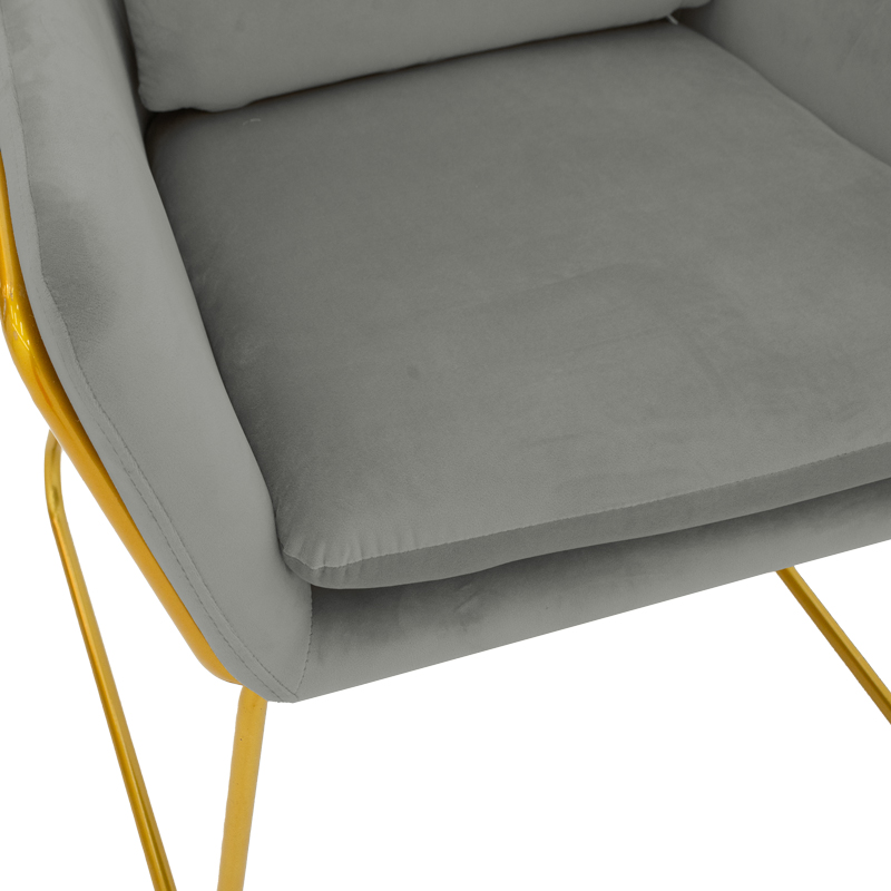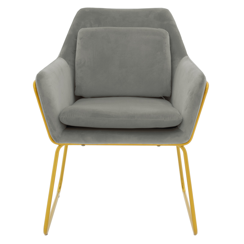 Πολυθρόνα Mira pakoworld βελούδο γκρι-χρυσό 65x69x86εκ Επενδύστε στην ποιότητα, το χρώμα και την αισθητική ανανεώνοντας το χώρο σας με μία πολυθρόνα Mira.Μία πολυτελής και άνετη κατασκευή που θα ομορφύνει τον προσωπικό σας χώρο για στιγμές χαλάρωσης και ξεκούρασης.Τεχνικά χαρακτηριστικά: Στήριξη σε δύο μεταλλικά πόδια κατασκευασμένα από εξαιρετικής ποιότητας και αντοχής σε χρυσό χρώμα. Επένδυση με βελούδινο ύφασμα ασυναγώνιστης ποιότητας Προσφέρεται σε γκρι-χρυσό χρώμα.Διαστάσεις προϊόντος: Μήκος: 65 εκ. (Εσωτερικό χωρίς το μπράτσο: 47εκ.) Πλάτος: 69 εκ. Ύψος: 86 εκ. Ύψος έδρας: 51 εκ. Βάθος έδρας: 49 εκ. Ύψος πλάτης: 43 εκ.Πληροφορίες υλικών: Μέταλλο: Το μέταλλο χρησιμοποιείται ευρέως στην κατασκευή επίπλων, προσφέροντας μια σειρά από πλεονεκτήματα σε σχέση με άλλα υλικά. Είναι εξαιρετικά ανθεκτικό σε φθορές, ιδανικό για έπιπλα που προορίζονται για καθημερινή χρήση σε ένα απαιτητικό περιβάλλον. Διατηρεί το σχήμα και τη δομή του άψογα, εξασφαλίζοντας σταθερότητα και μακροζωία στα έπιπλα. Εκτός από τις ιδιότητες που αναφέρθηκαν παραπάνω, το μέταλλο μπορεί να έχει και άλλα χαρακτηριστικά, όπως η αντιμικροβιακή δράση (χαλκός) ή υπεραγωγιμότητα (μολυβδένιο). Βελούδο ύφασμα: Το βελούδο είναι ένα ύφασμα με κοντές, πυκνές ίνες, συνήθως από μετάξι, βαμβάκι ή συνθετικά υλικά. Έχει μια απαλή, λεία υφή και μια πλούσια, γυαλιστερή εμφάνιση. Χαρακτηρίζεται για την πυκνότητα του και την απαλότητά του.Οδηγίες υλικών: Μέταλλο: Εάν πρόκειται για οποιοδήποτε μέταλλο εσωτερικού χώρου, ένα ξεσκόνισμα ή ένα καθάρισμα με υγρό πανί σε τακτά χρονικά διαστήματα είναι η ενδεδειγμένη επιλογή. Βελούδο ύφασμα: Χρησιμοποιείστε μία μαλακή βούρτσα, ή την ηλεκτρική σας σκούπα και το εξάρτημα με την μαλακή τρίχα και με απαλές κινήσεις καθαρίστε το βελούδο. Σε περίπτωση λεκέ σκουπίστε με ένα μαλακό πανί και χλιαρό νερό, αλλά τρίψτε πολύ απαλά το λεκέ χωρίς να ασκείτε πίεση γιατί θα ποτίσει ακόμα πιο βαθιά. Ξεπλύνετε καλά την περιοχή με καθαρό νερό και αφήστε το ύφασμα να στεγνώσει μακριά από τον ήλιο.Παρατηρήσεις: Το προϊόν παραδίδεται αμοντάριστο, σε εργοστασιακή συσκευασία και με αναλυτικό οδηγό συναρμολόγησης. Η χρωματική απόχρωση του προϊόντος ενδέχεται να διαφέρει ελαφρώς σε σχέση με την φωτογραφική απεικόνισή του στην οθόνη σας.