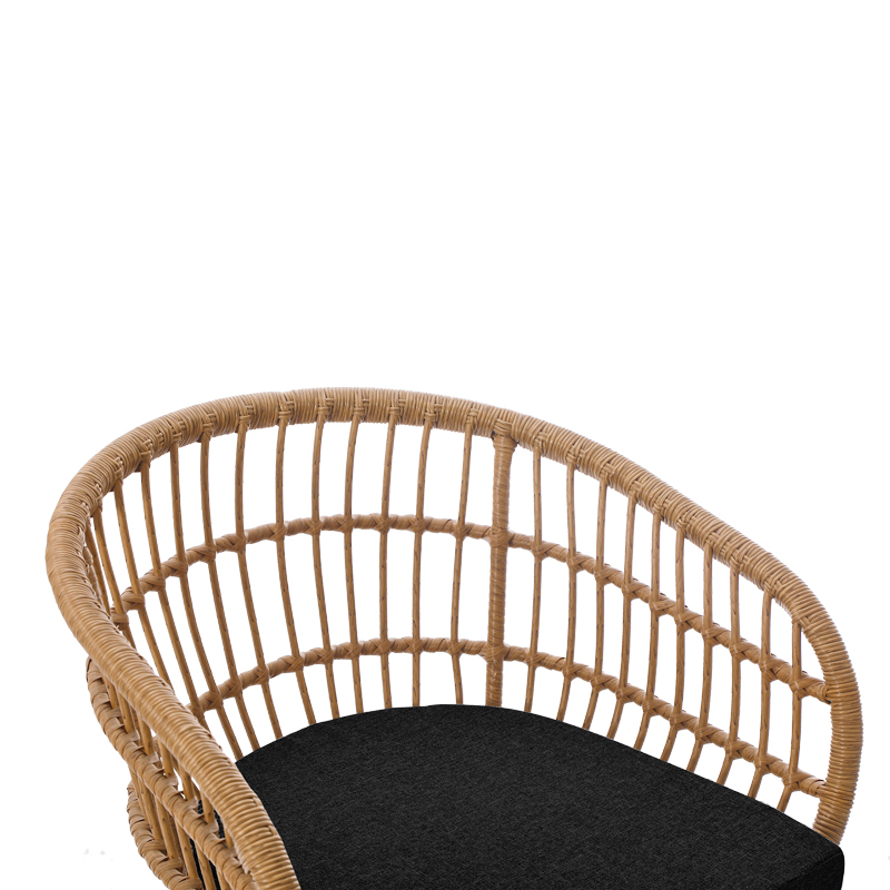 Πολυθρόνα Naoki pakoworld με μαξιλάρι pe rattan σε φυσική απόχρωση και μαύρα μεταλλικά πόδια 63x61x79εκ