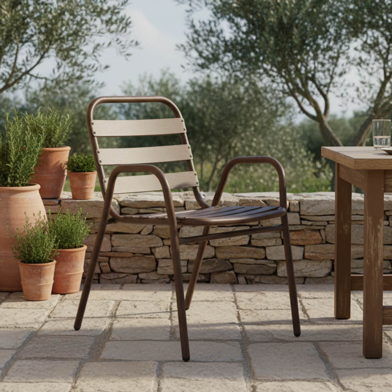 Πολυθρόνα Sussie pakoworld στοιβαζόμενη καφέ μέταλλο με φέτες αλουμινίου 45x62x76εκ Η πολυθρόνα Sussie προσφέρει άνεση στο κάθισμα αλλά και ανθεκτικότητα χάρη στην εξαιρετική ποιότητα κατασκευής της. Τοποθετήστε την στο μπαλκόνι ή στον κήπο σας και συνδυάστε την αισθητική με την εργονομία.Τεχνικά χαρακτηριστικά: Σταθερός σκελετός από μέταλλο εξαιρετικής ποιότητας με αντοχή σε φθορά και χρόνο, ενώ τα κομμάτια έδρας και πλάτης είναι κατασκευασμένα από φέτες αλουμινίου. Το μέταλλο παρέχει ανθεκτικότητα και σταθερότητα, ενώ οι φέτες αλουμινίου προσθέτουν ελαφρότητα και μια μοντέρνα αίσθηση στον σχεδιασμό. Η πολυθρόνα αυτή είναι ιδανική για χρήση σε εξωτερικούς χώρους, καθώς η ανθεκτικότητα στις καιρικές συνθήκες του αλουμινίου την καθιστά ανθεκτική σε έκθεση στον ήλιο και την υγρασία. Μεγάλη ανθεκτικότητα: κατάλληλο για χρήση σε εξωτερικό χώρο εκτεθειμένο σε καιρικές συνθήκες κι υγρασία. Προσφέρεται σε χρώμα καφέΔιάσταση προϊόντος: Μήκος: 45 εκ. Πλάτος: 62 εκ Υψος: 76 εκ. Μήκος έδρας: 42 εκ. Βάθος έδρας: 42 εκ. Ύψος έδρας: 43 εκ. Μήκος πλάτης: 42 εκ. Ύψος πλάτης: 39 εκ Ύψος μπράτσου από πάτωμα: 58.5 εκ.Πληροφορίες υλικών: Μέταλλο: Το μέταλλο χρησιμοποιείται ευρέως στην κατασκευή επίπλων, προσφέροντας μια σειρά από πλεονεκτήματα σε σχέση με άλλα υλικά. Είναι εξαιρετικά ανθεκτικό σε φθορές, ιδανικό για έπιπλα που προορίζονται για καθημερινή χρήση σε ένα απαιτητικό περιβάλλον. Διατηρεί το σχήμα και τη δομή του άψογα, εξασφαλίζοντας σταθερότητα και μακροζωία στα έπιπλα. Εκτός από τις ιδιότητες που αναφέρθηκαν παραπάνω, το μέταλλο μπορεί να έχει και άλλα χαρακτηριστικά, όπως η αντιμικροβιακή δράση (χαλκός) ή υπεραγωγιμότητα (μολυβδένιο).Οδηγίες συντήρησης: Μέταλλο: Εάν πρόκειται για οποιοδήποτε μέταλλο εσωτερικού χώρου, ένα ξεσκόνισμα ή ένα καθάρισμα με υγρό πανί σε τακτά χρονικά διαστήματα είναι η ενδεδειγμένη επιλογή. Ωστόσο, εάν πρόκειται για μεταλλικά έπιπλα εξωτερικού χώρου, θα πρέπει να ακολουθήσετε τα παρακάτω βήματα: Για μεγαλύτερη διάρκεια προστασίας, περάστε τα μεταλλικά σας έπιπλα με προστατευτική κρέμα που μπορείτε να προμηθευτείτε εύκολα από εμπορικά καταστήματα. Εάν τα έπιπλά σας είναι επεξεργασμένα και βαμμένα με την μέθοδο του powder-coating (ηλεκτροστατική βαφή) τότε είναι πολύ ανθεκτικά και καθαρίζονται εύκολα με ένα υγρό πανί. Εάν τα μεταλλικά σας έπιπλα δεν έχουν ηλεκτροστατική βαφή, τότε θα πρέπει να τα προσέχετε περισσότερο και να τα κρατάτε μακριά από νερά και υγρασία. Μπορείτε να τα καλύψετε με ειδικά καλύμματα και τον χειμώνα να τα βάζετε εάν μπορείτε σε εσωτερικό χώρο. Εάν παρατηρήσετε σκουριά, τότε αφαιρέστε την με νέφτι και στην συνέχεια περάστε αντισκωριακό βερνίκι πριν βάψετε την επιφάνεια με μπογιά, ανθεκτική στην οξείδωση. Παρατηρήσεις: Το προϊόν παραδίδεται σε εργοστασιακή συσκευασία και με αναλυτικό οδηγό συναρμολόγησης. Η χρωματική απόχρωση του προϊόντος ενδέχεται να διαφέρει ελαφρώς σε σχέση με την φωτογραφική απεικόνισή του στην οθόνη σας.