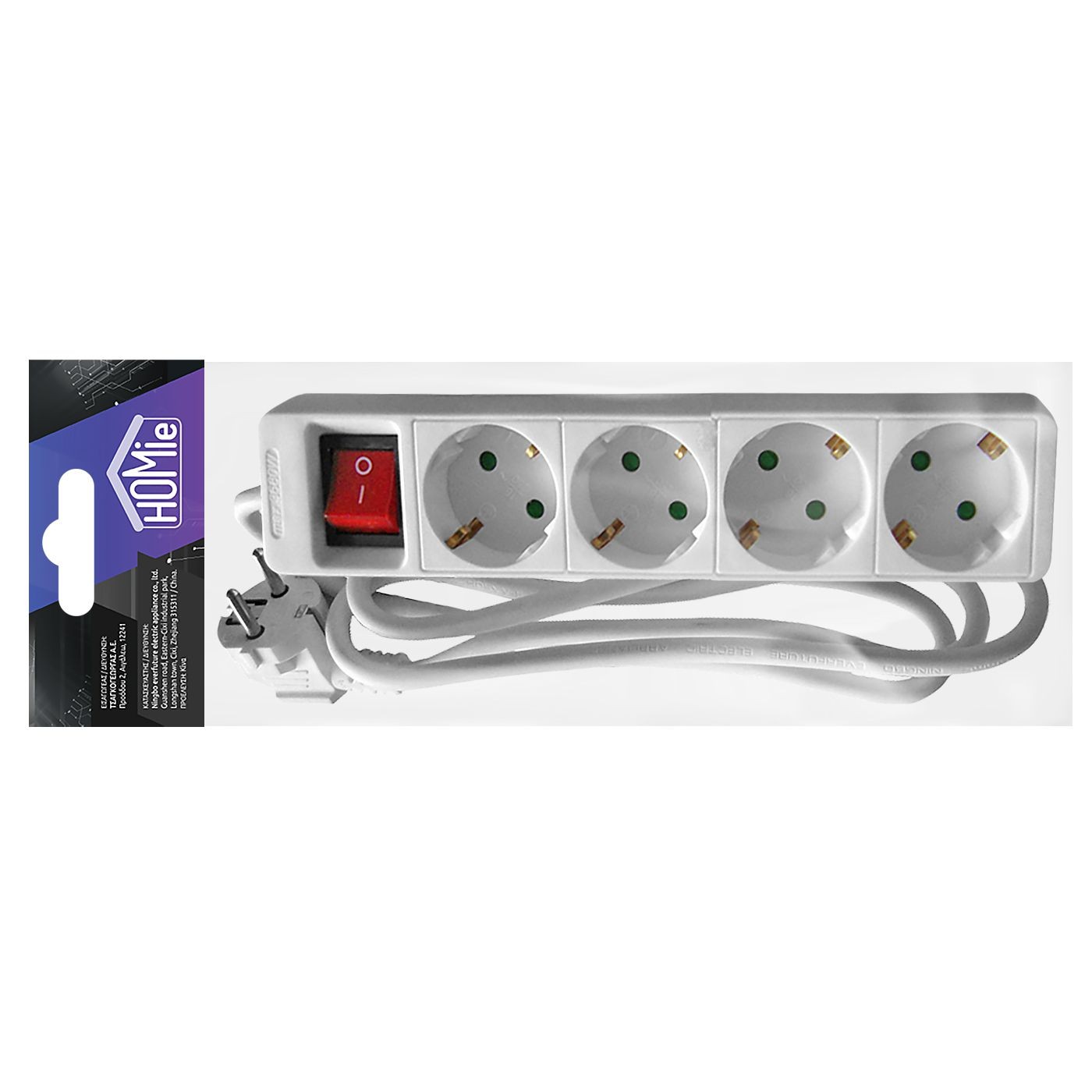 Πολύπριζο 4 Θέσεων με Διακόπτη Λευκό 1,5m (3×1.5mm2) Homie 32403