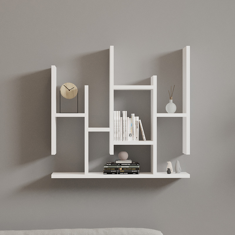 Ραφιέρα τοίχου Bemba pakoworld σε λευκή απόχρωση 70×19,6×68,8εκ Η επιτοίχια ραφιέρα Bemba ξεχωρίζει με τον μοναδικό, αρχιτεκτονικά εμπνευσμένο σχεδιασμό της, προσφέροντας μια εντυπωσιακή και λειτουργική προσθήκη σε κάθε σύγχρονο χώρο. Η δυναμική της σύνθεση, με κάθετα και οριζόντια ράφια σε διαφορετικά ύψη και μήκη, δημιουργεί ένα εντυπωσιακό αποτέλεσμα που αναδεικνύει τον τοίχο και προσθέτει μια αίσθηση βάθους και κίνησης.Τεχνικά χαρακτηριστικά: Κατασκευή από μοριοσανίδα 18mm με επένδυση μελαμίνης υψηλής ποιότητας με αντοχή στην καταπόνηση και στη φθορά. Η ραφιέρα διαθέτει μια σύνθεση από κάθετα και οριζόντια ράφια, δημιουργώντας ένα μοναδικό και εντυπωσιακό γεωμετρικό μοτίβο. Παρέχει αρκετό χώρο για την αποθήκευση και την προβολή βιβλίων, διακοσμητικών αντικειμένων και άλλων προσωπικών ειδών. Η επιτοίχια τοποθέτηση εξοικονομεί χώρο και δημιουργεί μια αίσθηση ελαφρότητας και ευρυχωρίας. Ιδανική για το σαλόνι, το υπνοδωμάτιο, το γραφείο ή οποιονδήποτε άλλο χώρο όπου χρειάζεστε λειτουργική αποθήκευση και μοντέρνο στυλ. Προσφέρεται σε χρώμα: λευκό Διάσταση προϊόντος: Μήκος: 70 εκ. Πλάτος: 19,60 εκ. Ύψος: 68,80 εκ. Παρατηρήσεις: Το προϊόν παραδίδεται αμοντάριστο σε εργοστασιακή συσκευασία , με αναλυτικό οδηγό συναρμολόγησης. Η χρωματική απόχρωση του προϊόντος ενδέχεται να διαφέρει ελαφρώς σε σχέση με την φωτογραφική απεικόνισή του στην οθόνη σας.η επιτοίχια ραφιέρα bemba είναι η ιδανική επιλογή για όσους αναζητούν ένα έπιπλο που συνδυάζει λειτουργικότητα, μοντέρνο σχεδιασμό και καλλιτεχνική έκφραση.